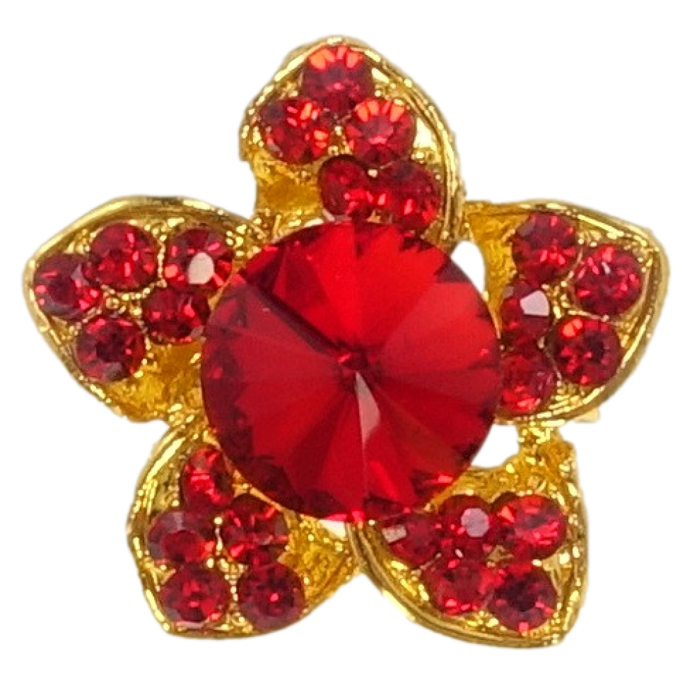 Брошка Квітка з червоними стразами