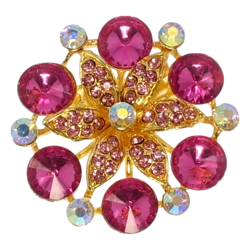 Брошка Квітка з рожевими стразами
