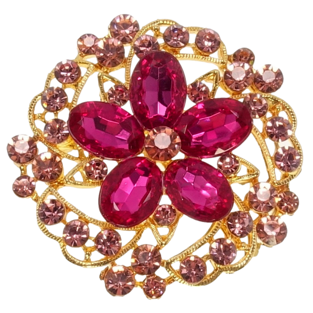 Брошка Квітка з рожевими стразами