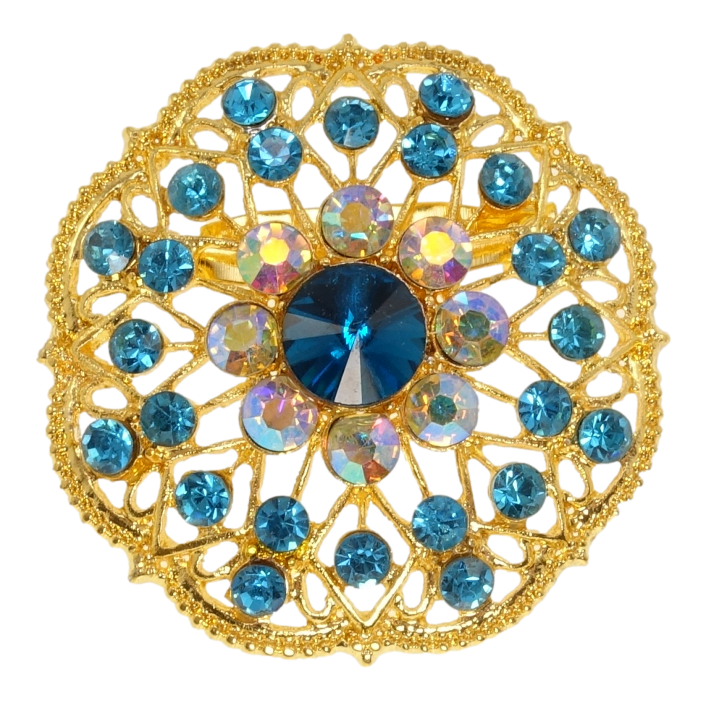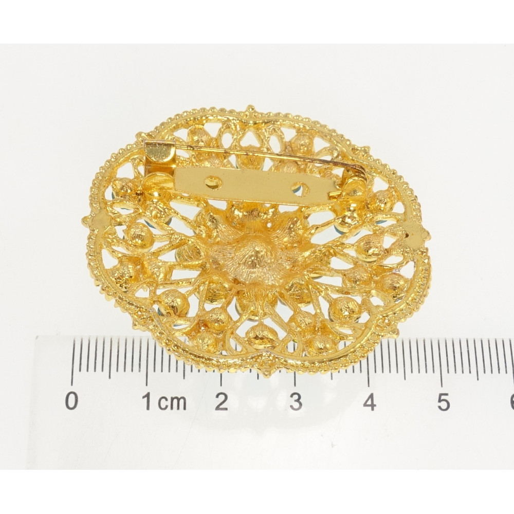 Брошка Квітка з бірюзовими стразами