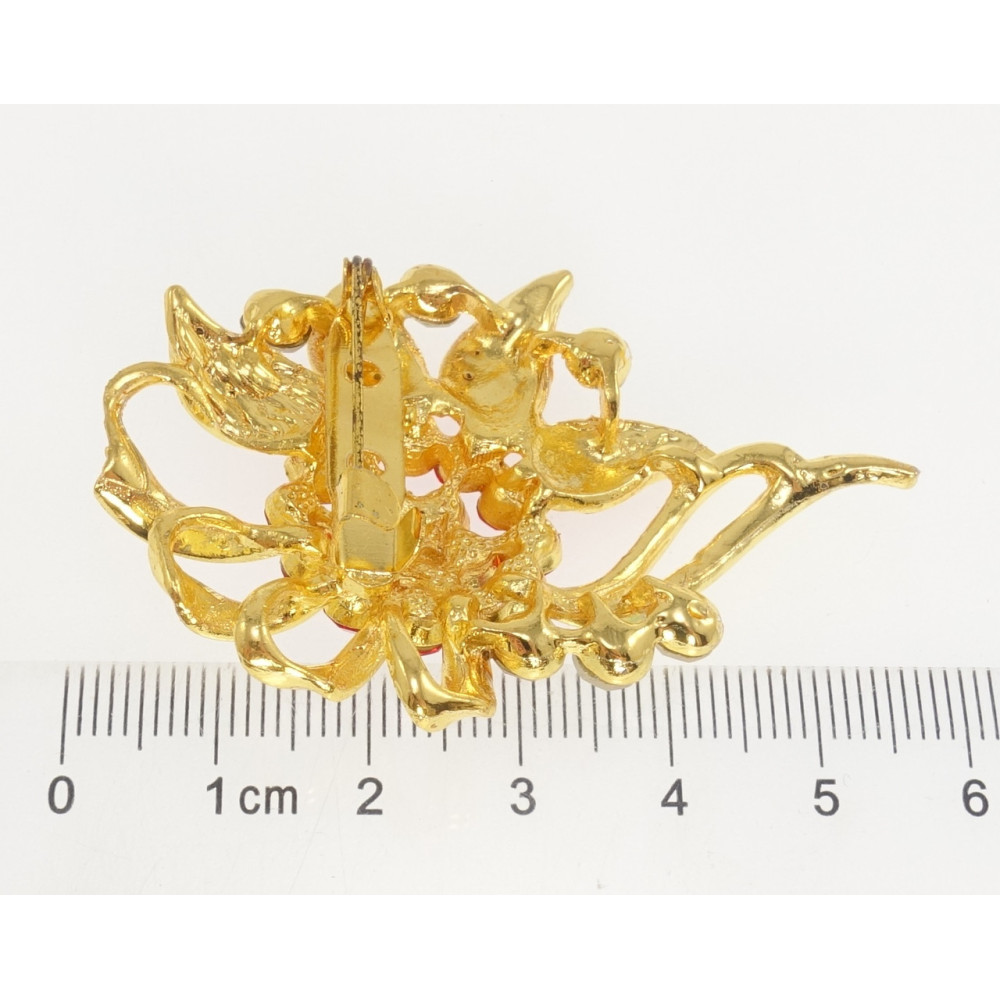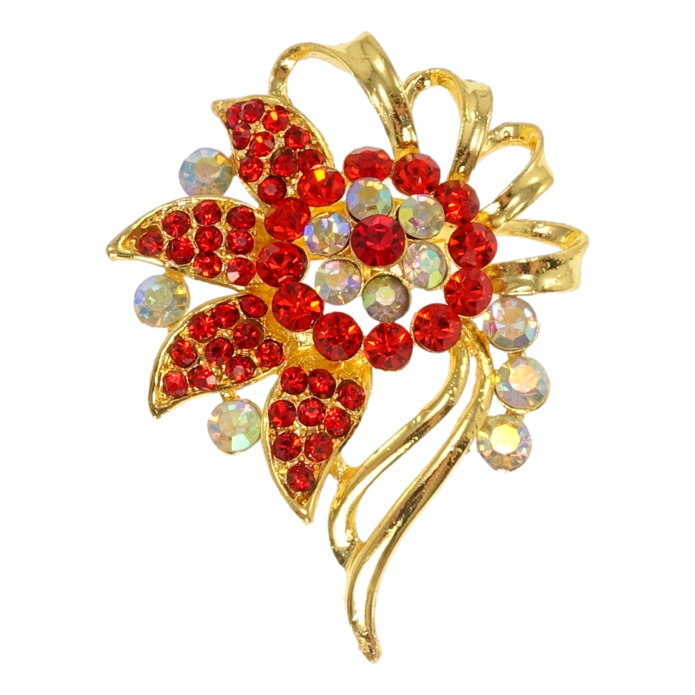 Брошка Квітка з червоними стразами