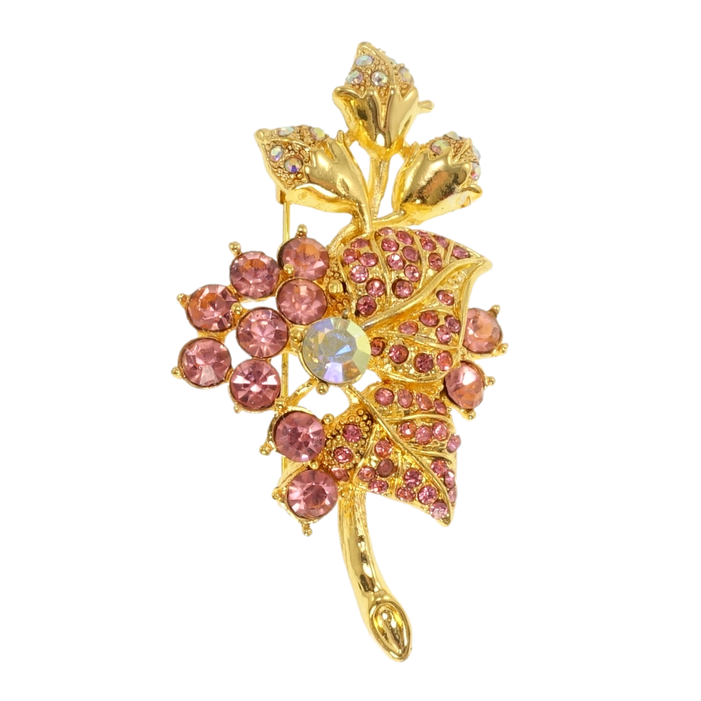 Брошка Квітка з рожевими стразами