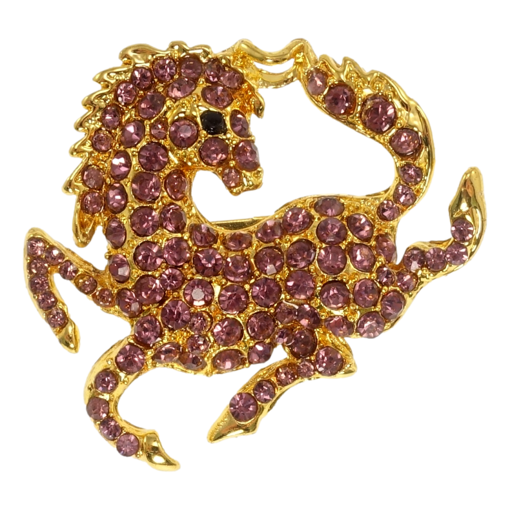 Брошка Кінь з бордовими стразами