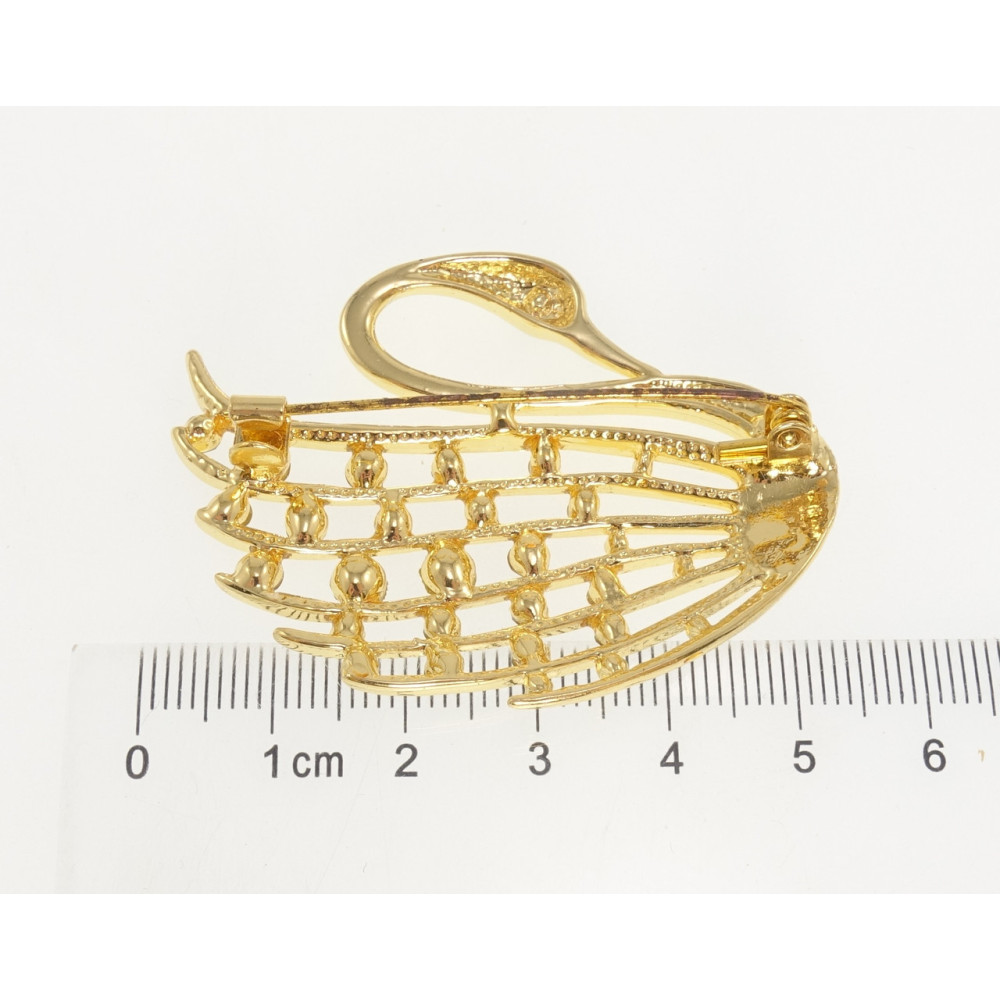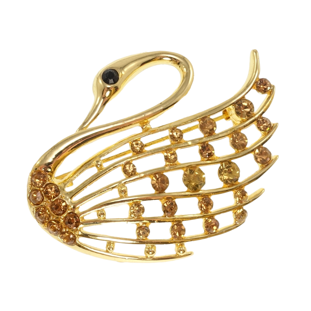 Брошка Лебідь із золотистими стразами