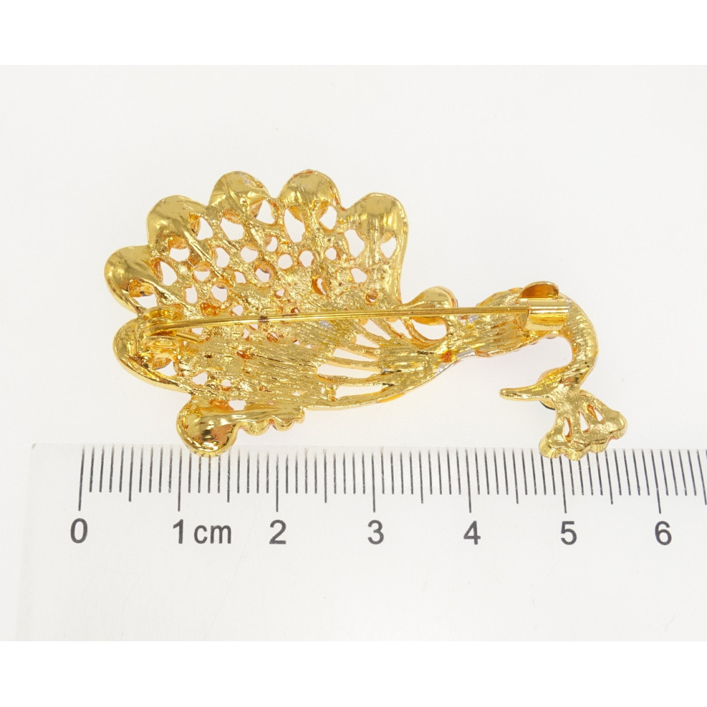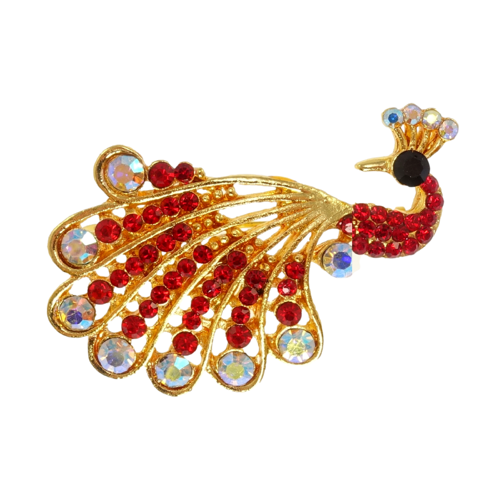 Брошка Павич з червоними стразами