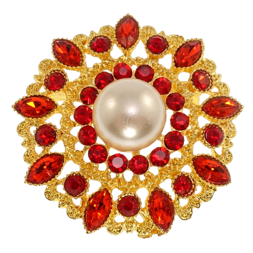 Брошка Квітка з перлами та червоними стразами