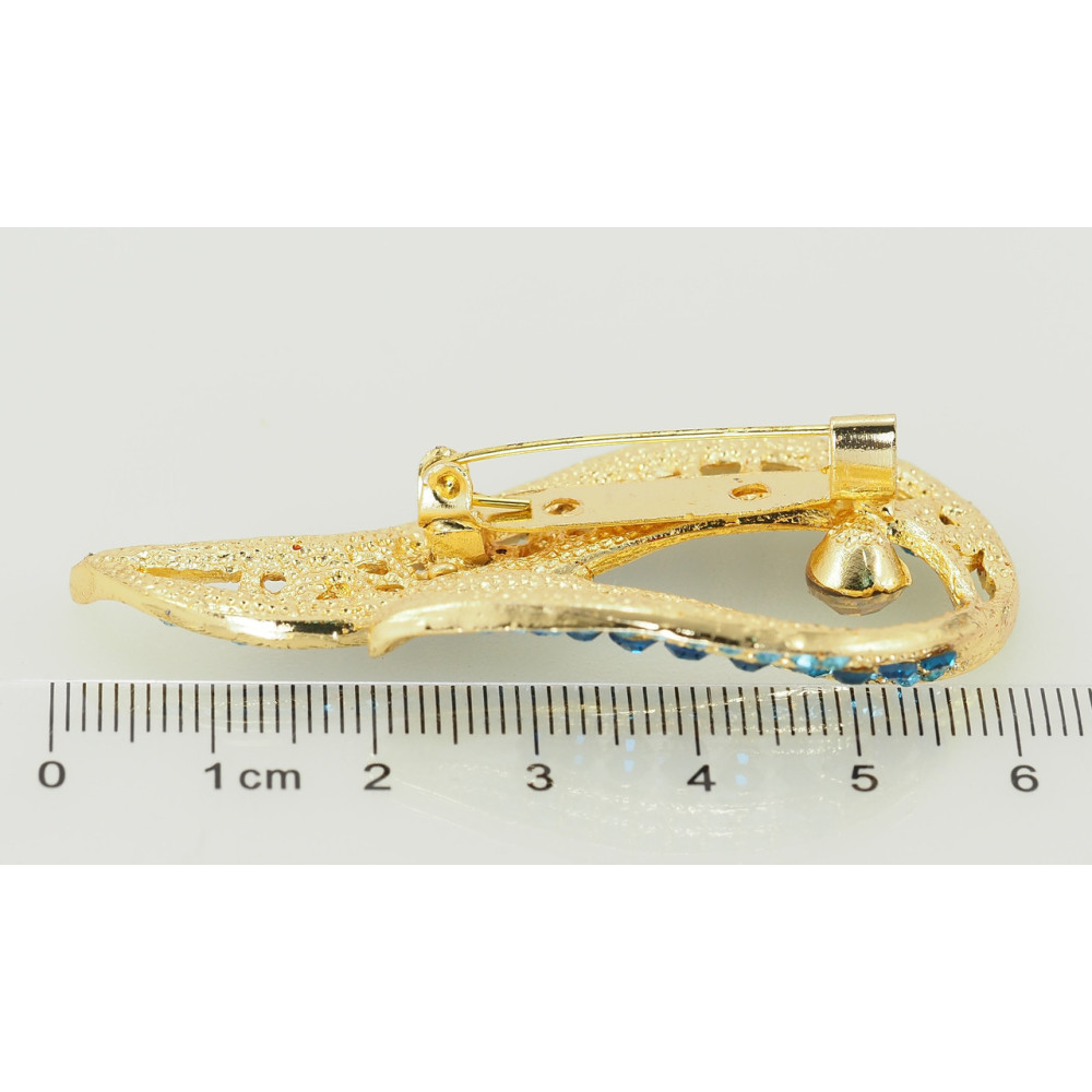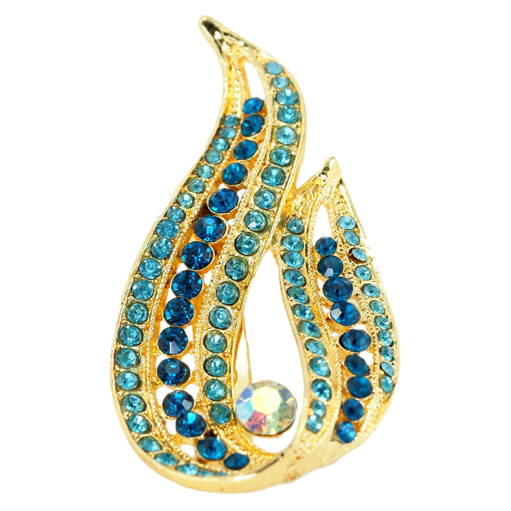 Брошка Вогник з блакитними стразами