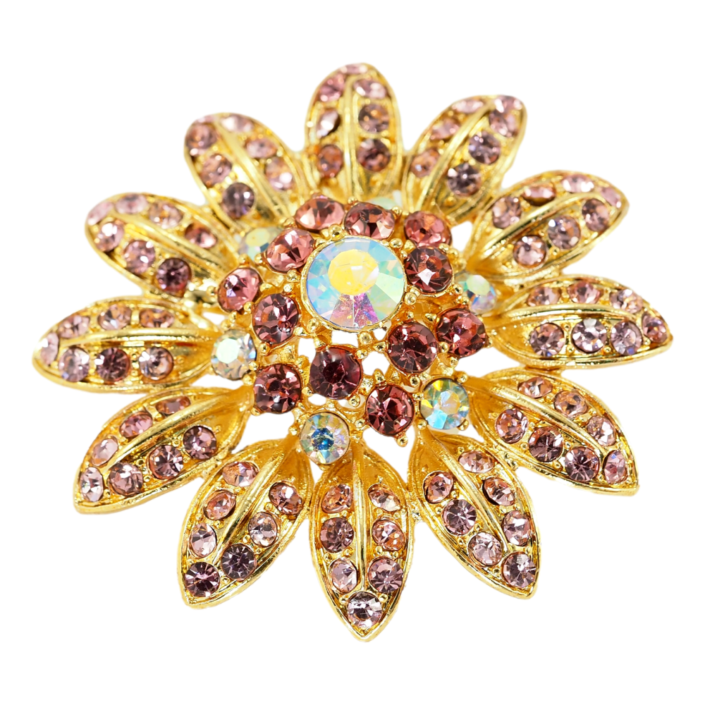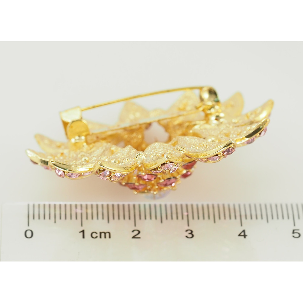 Брошка Квітка з рожевими стразами