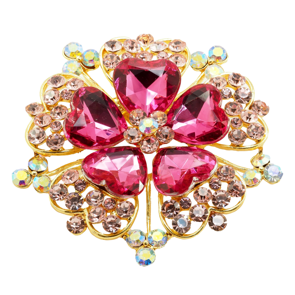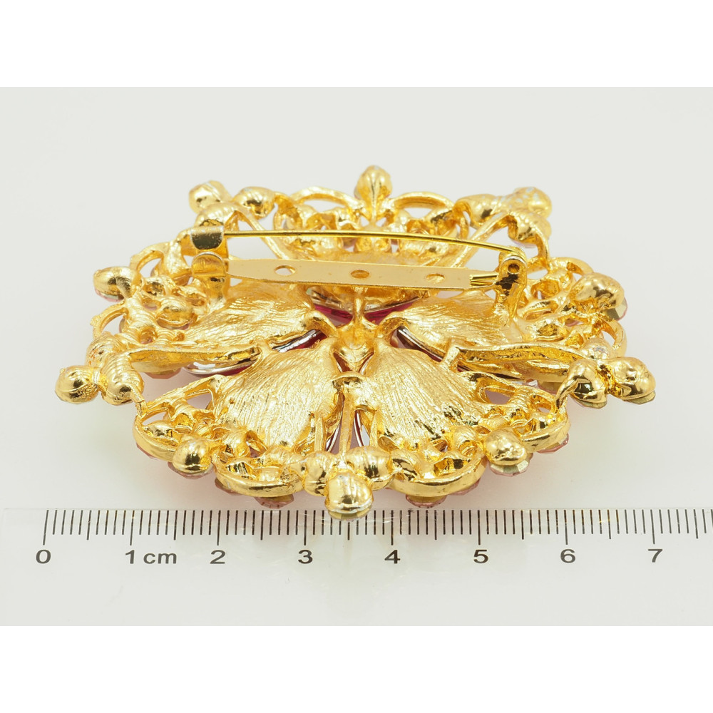 Брошка Квітка з рожевими стразами