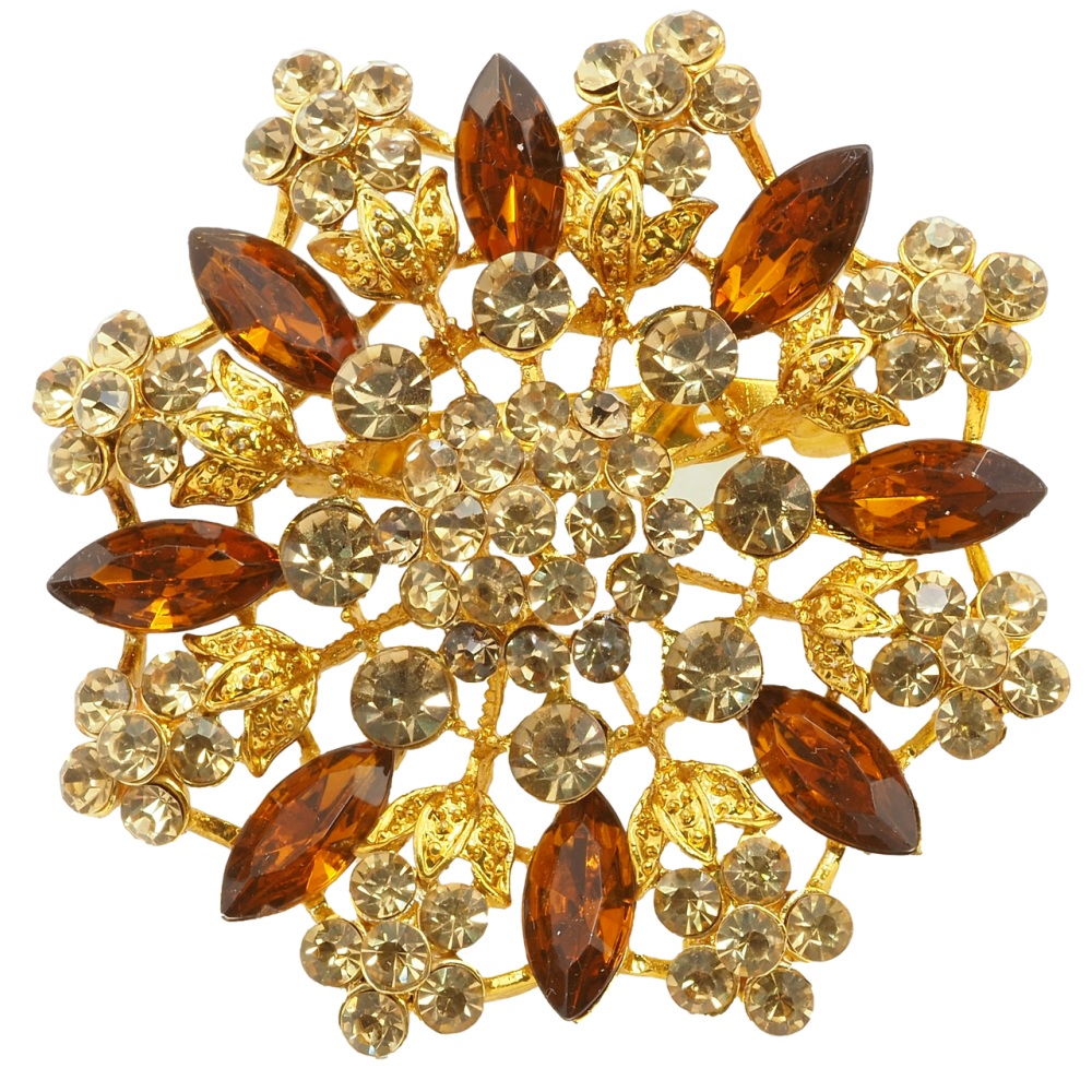 Брошка Квітка з коричневими стразами