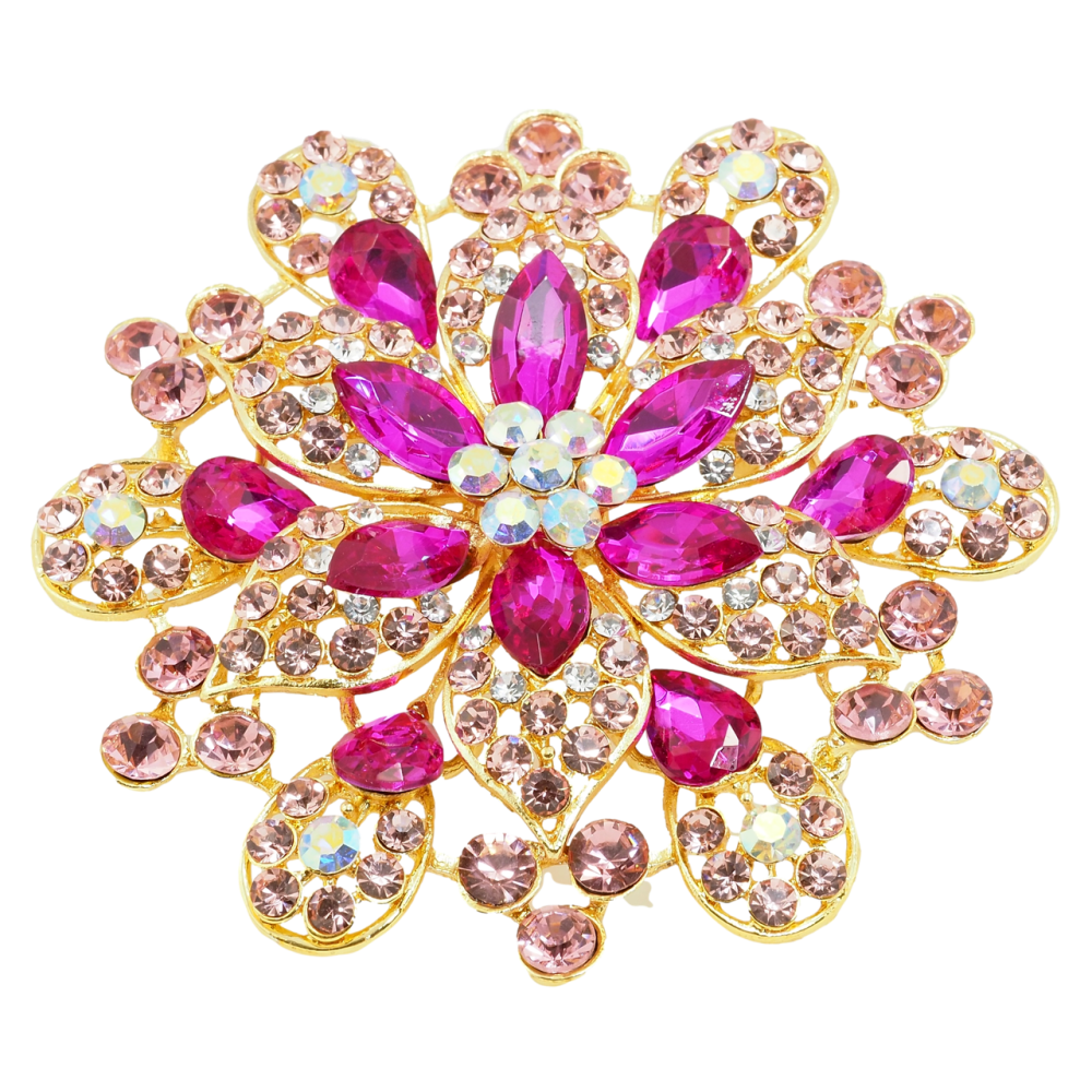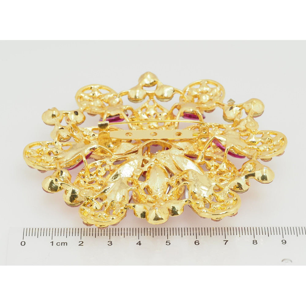 Брошка Велика квітка з рожевими стразами