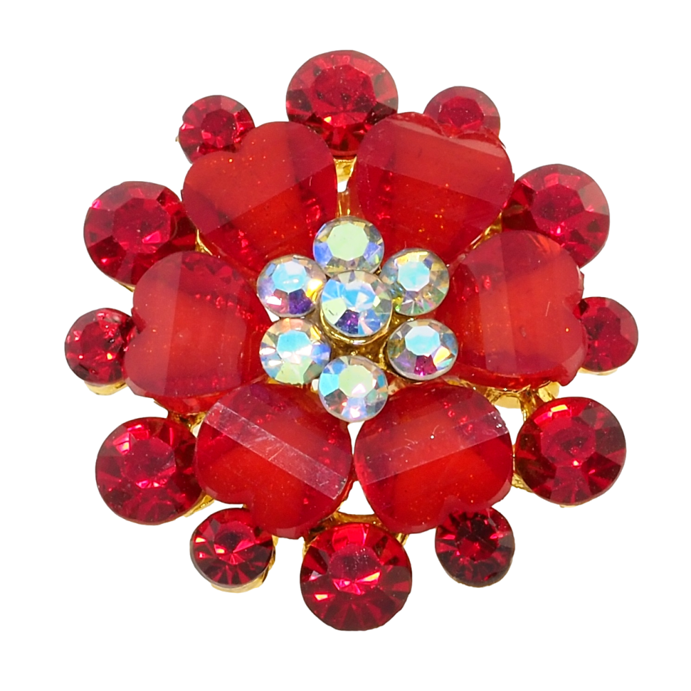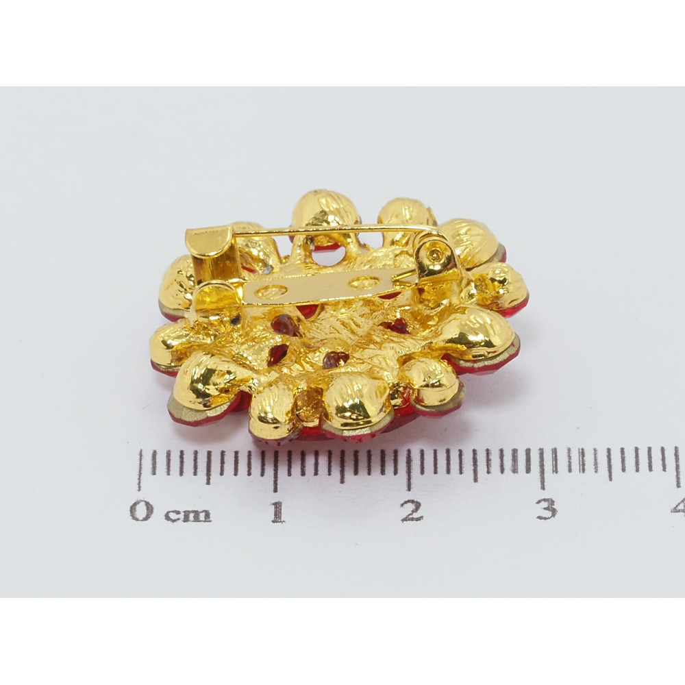 Брошка Квітка з червоними стразами