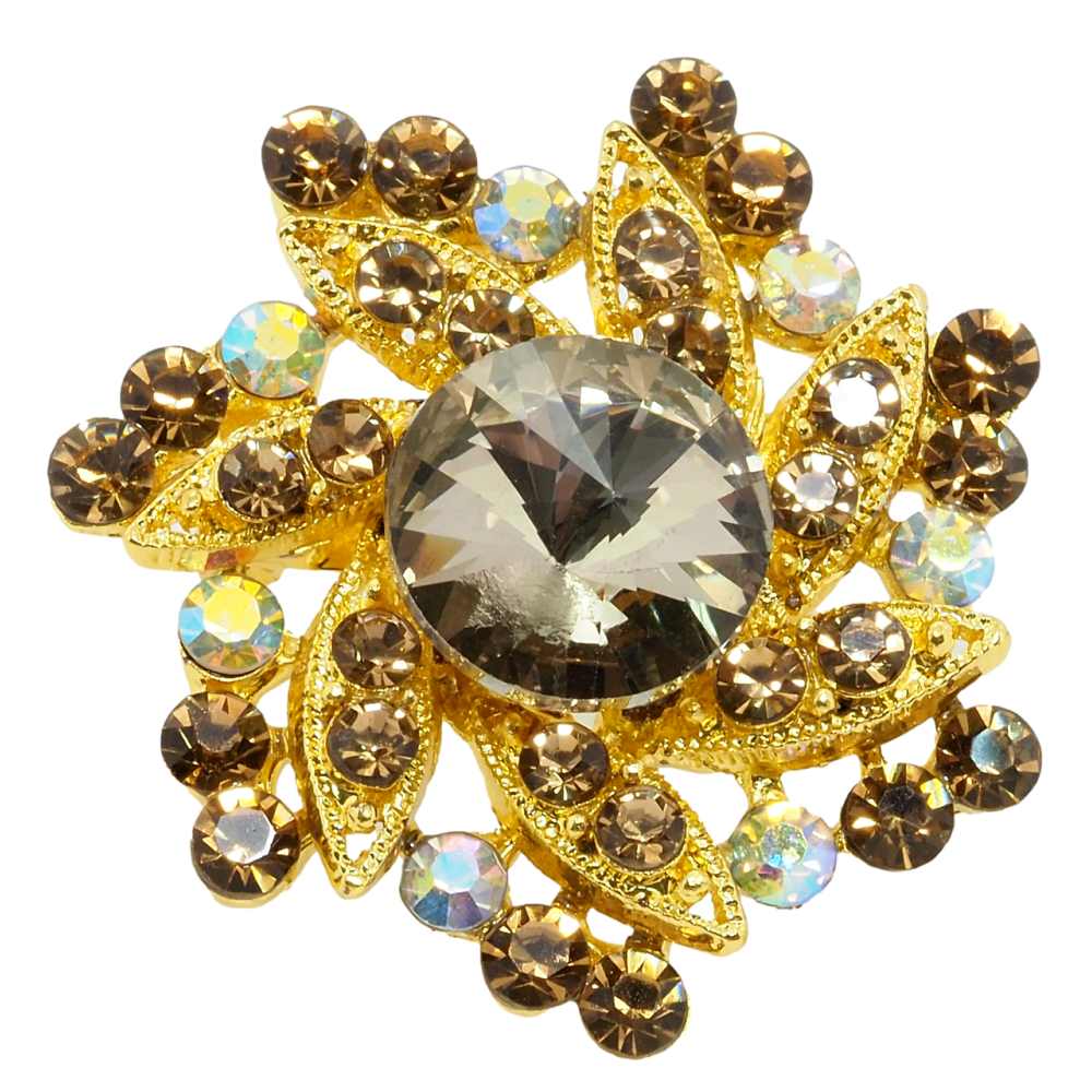 Брошка Квітка з коричневими стразами