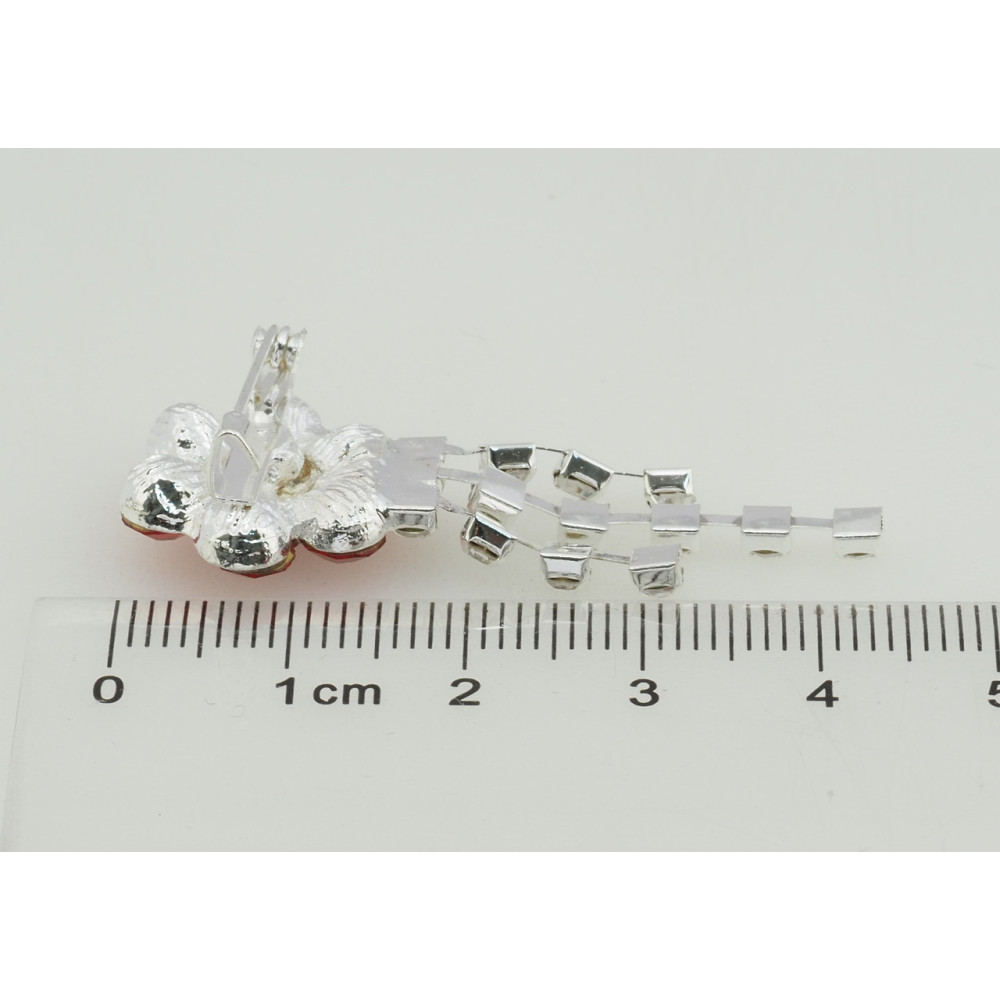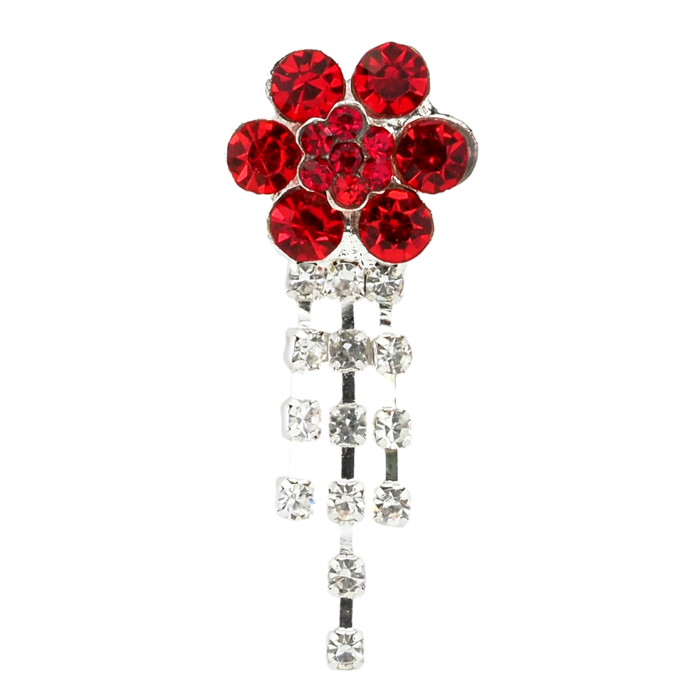 Брошка Квітка з червоними стразами