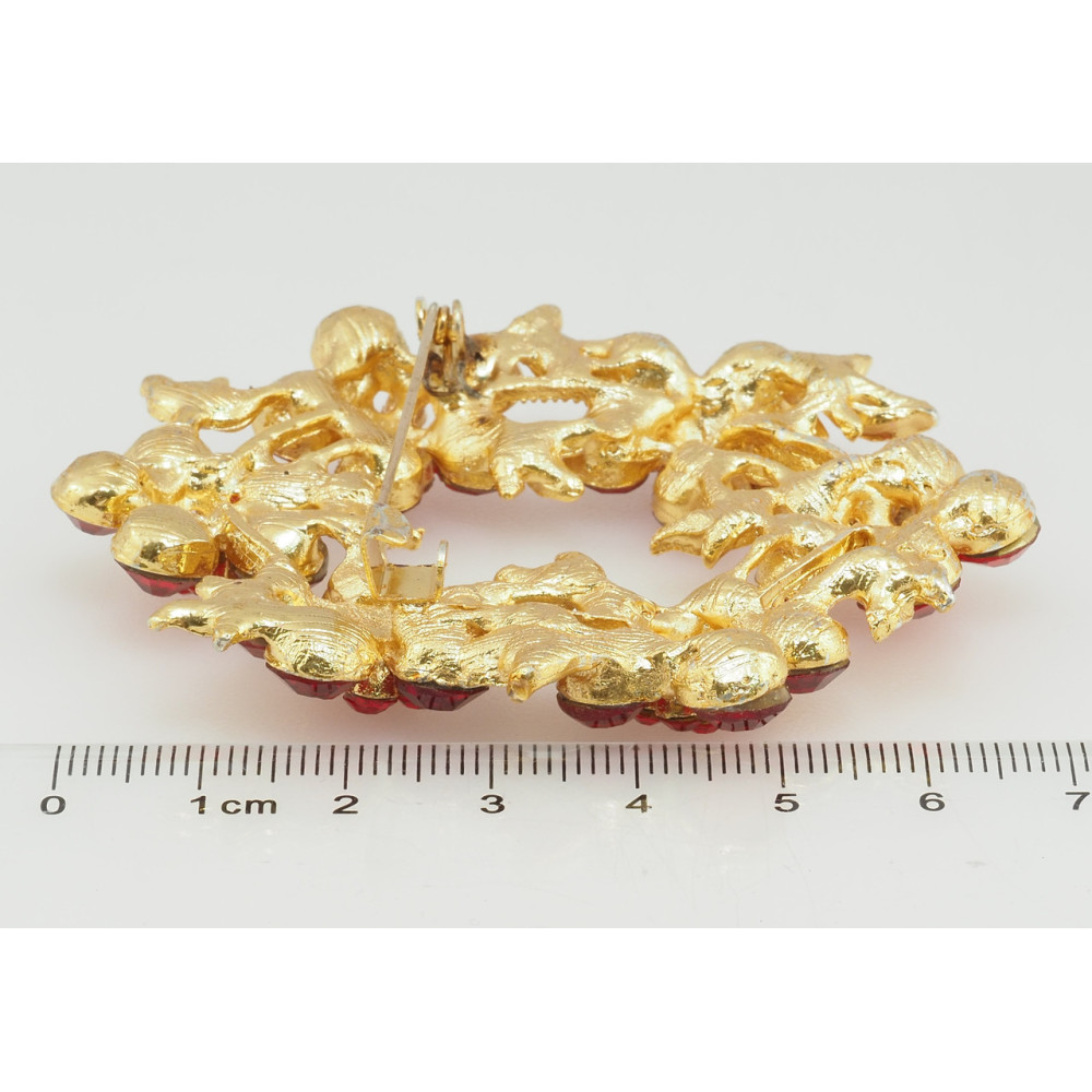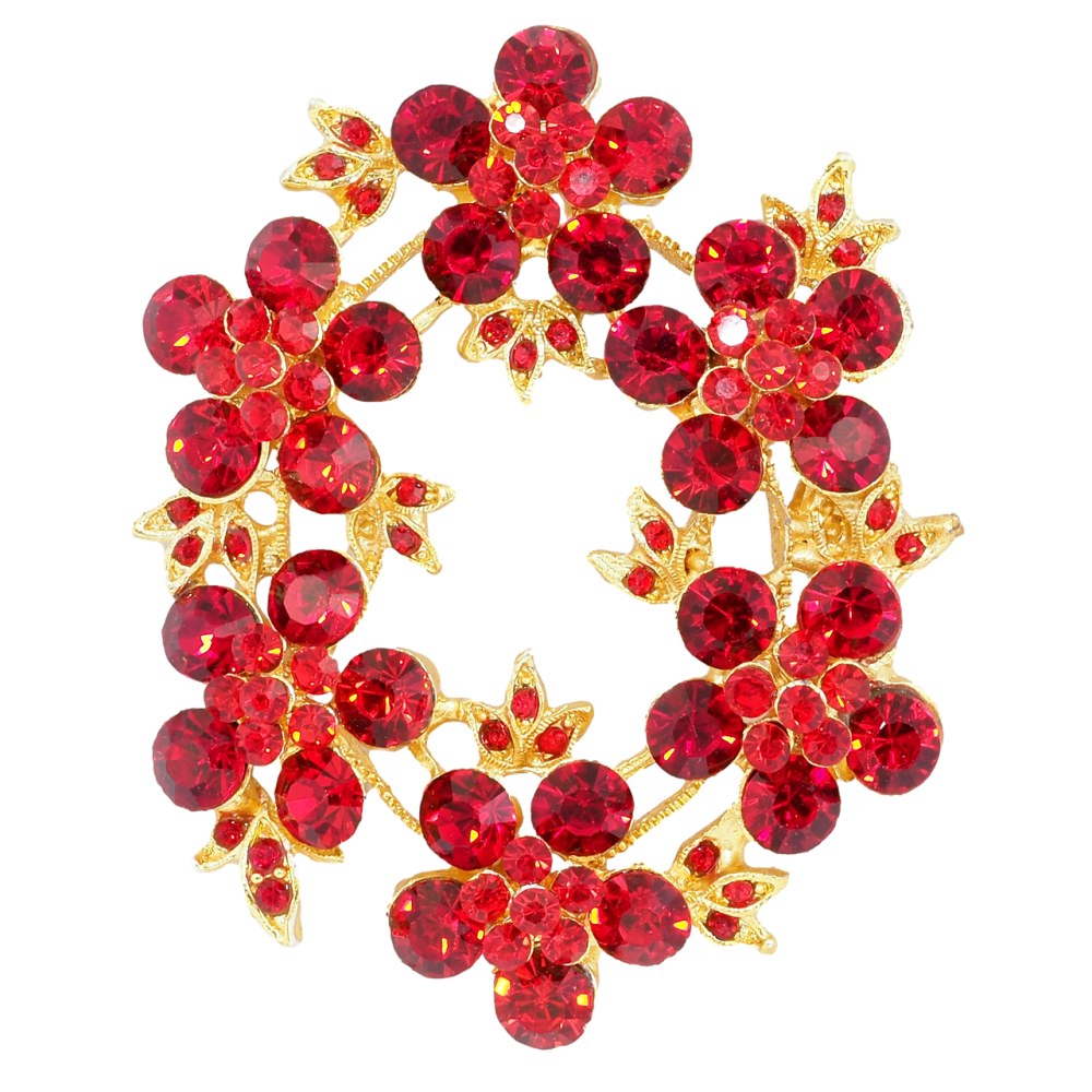 Брошка Віночок з червоними стразами