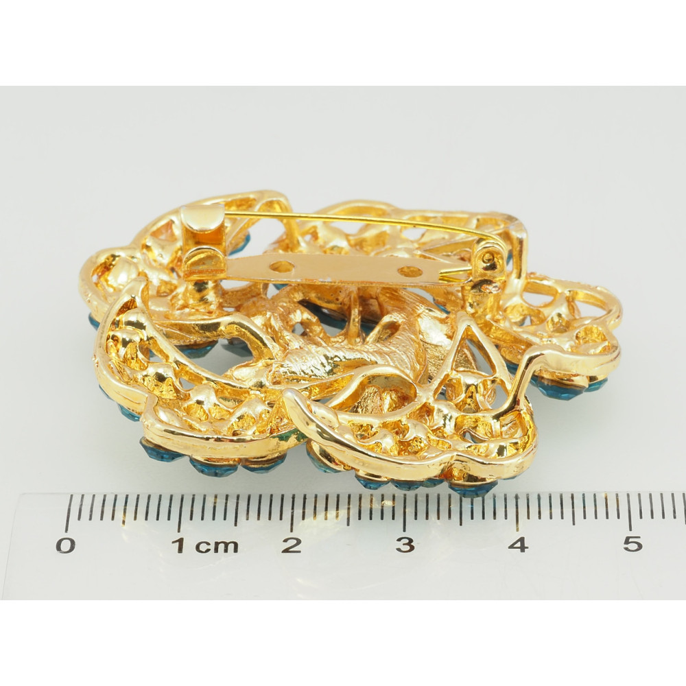 Брошка Квітка з бірюзовими стразами