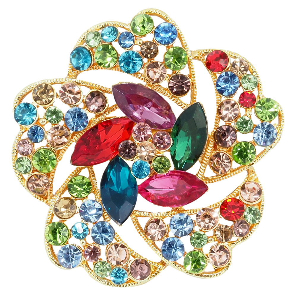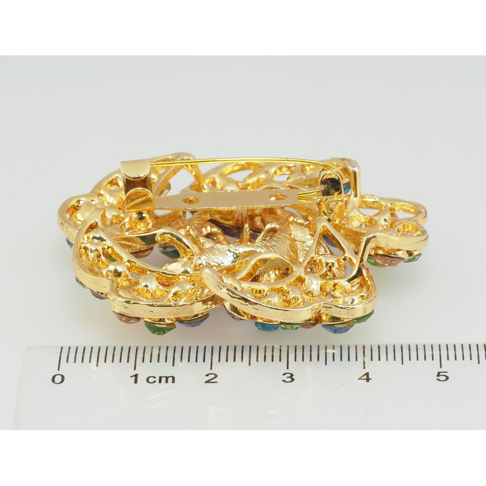 Брошка Квітка з різнокольоровими стразами