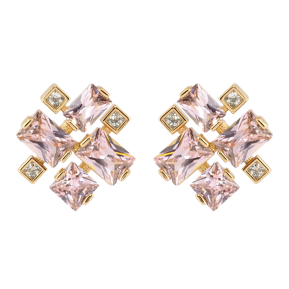 Сережки Xuping Позолота 18K пусети Рожеві фіаніти