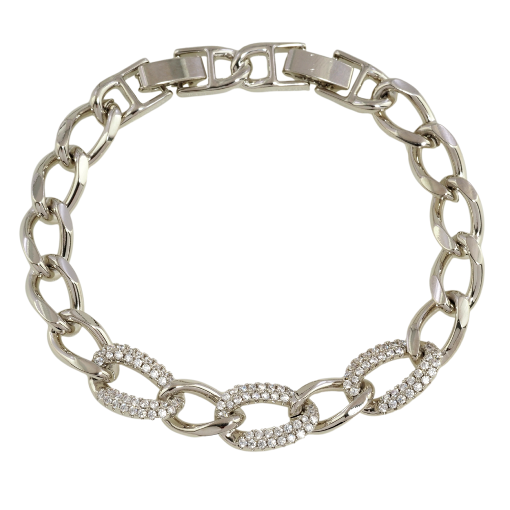 Браслет Xuping Родій Ланцюжок з інкрустацією цирконієм довжина з дод. замком 16.5,18.5см х 8мм