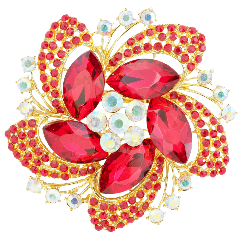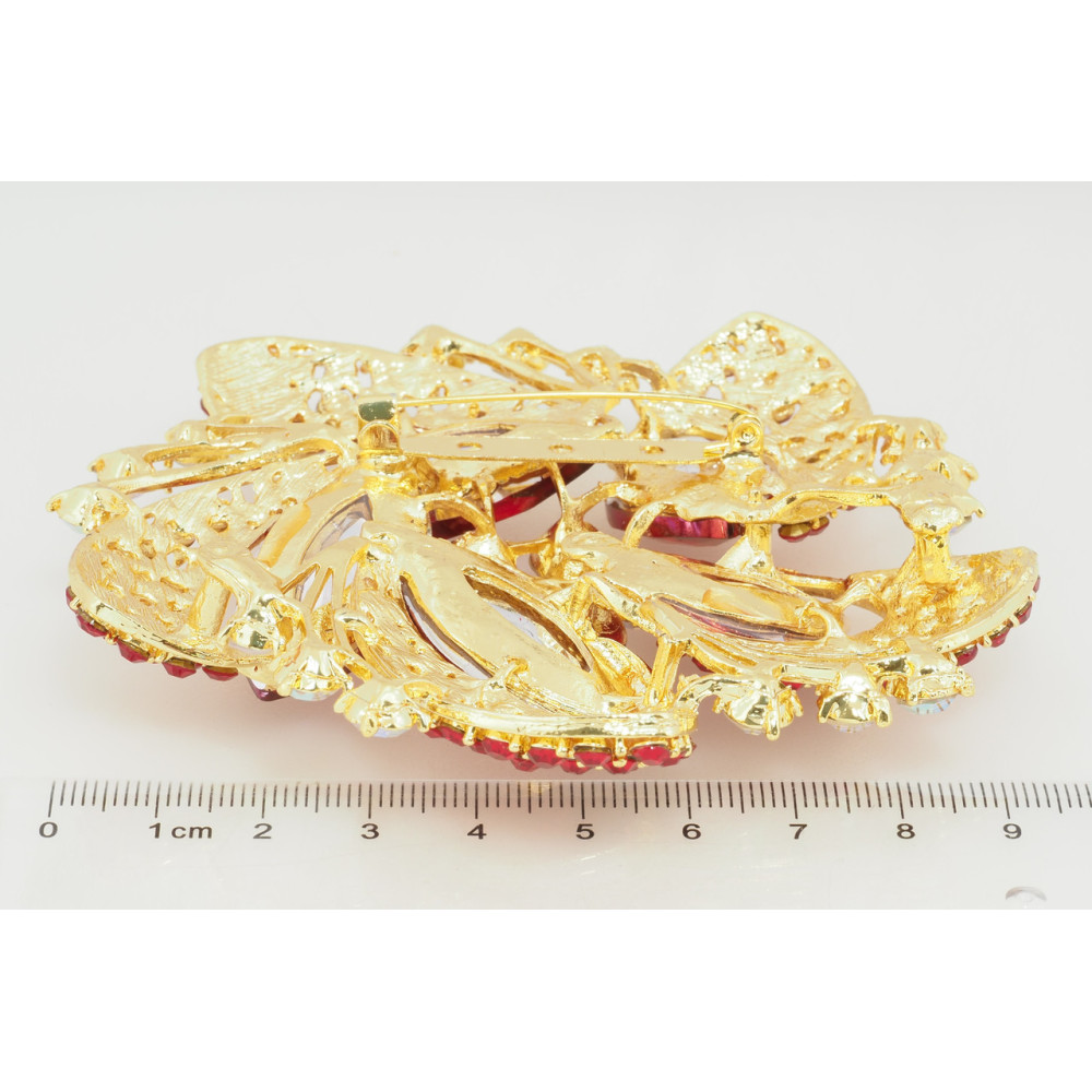 Брошка Велика квітка з червоними стразами