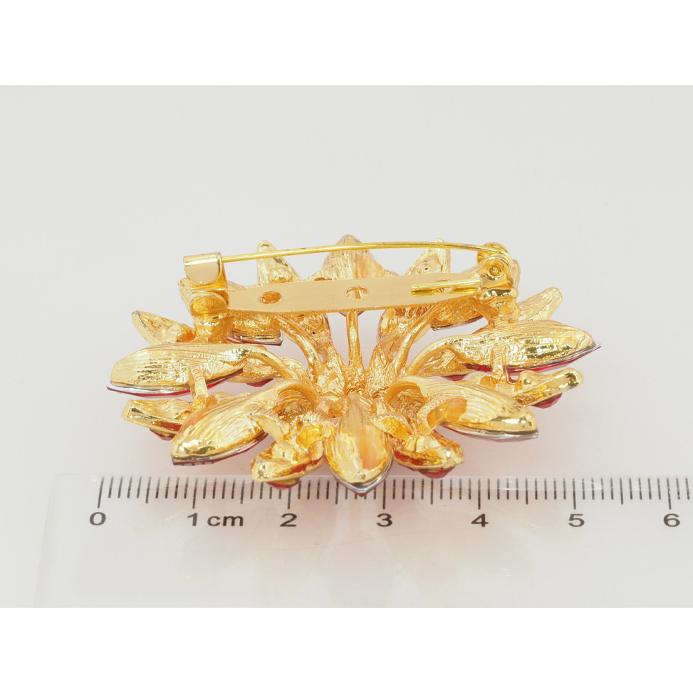 Брошка Квітка з червоними стразами