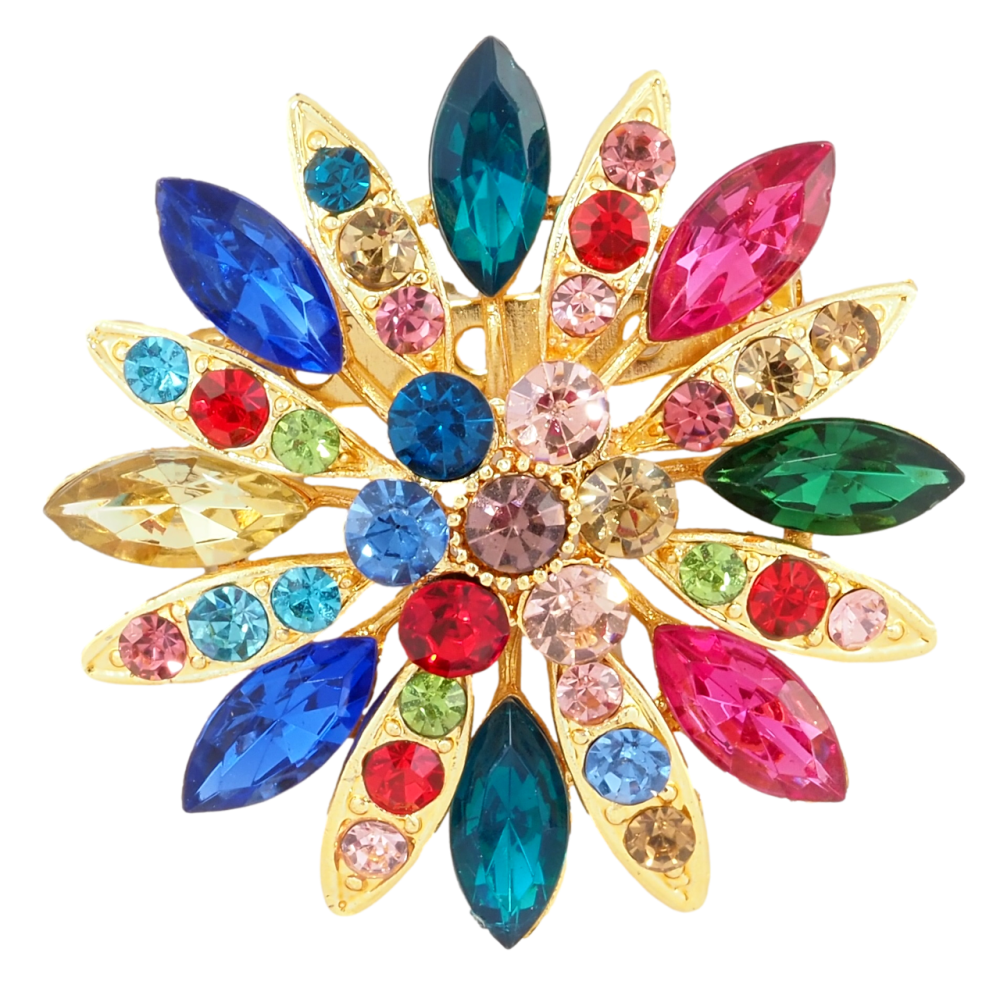 Брошка Квітка з різнокольоровими стразами