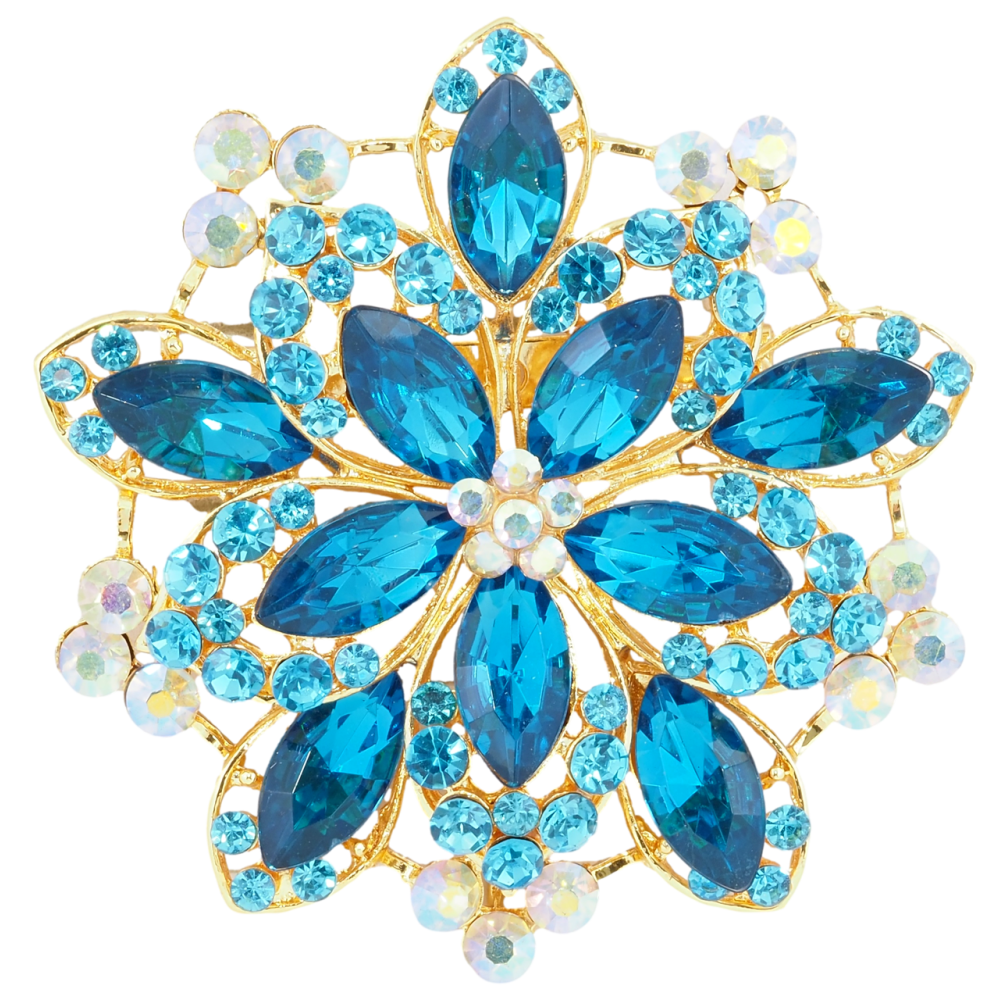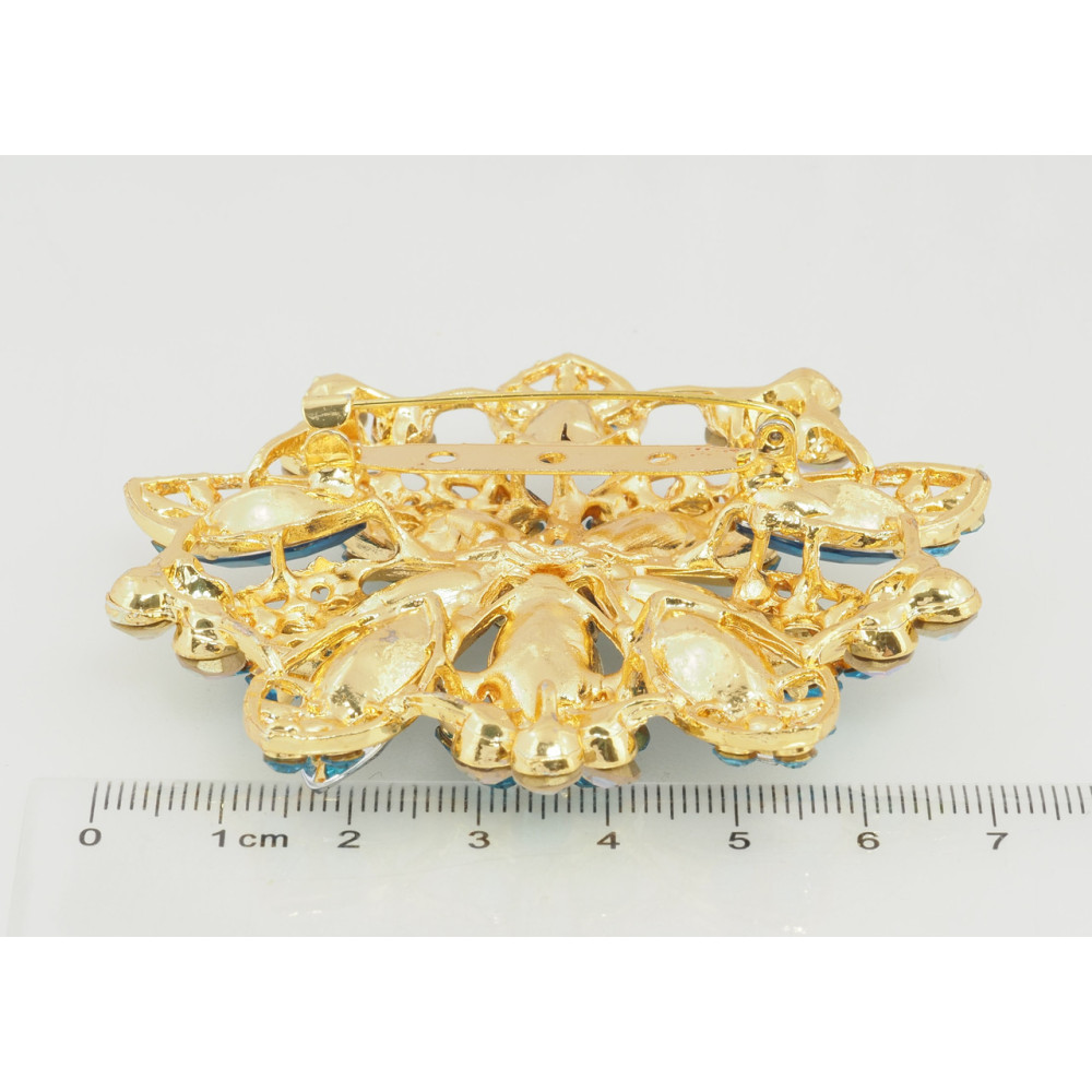 Брошка Квітка з бірюзовими стразами