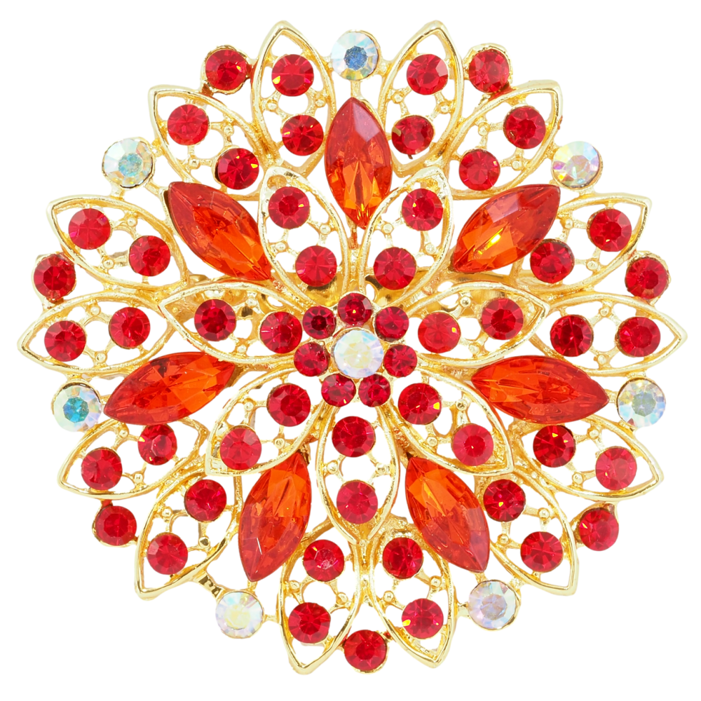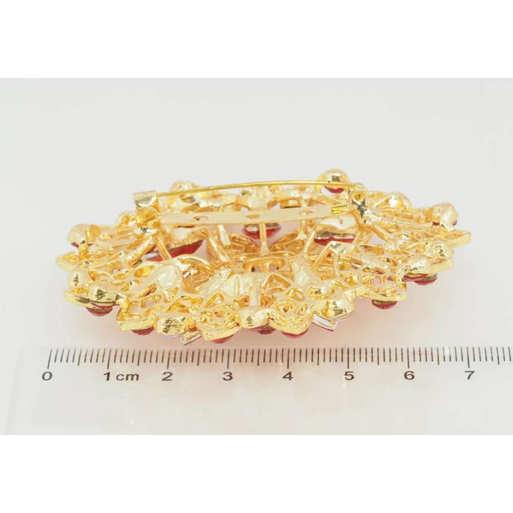 Брошка Квітка з червоними стразами