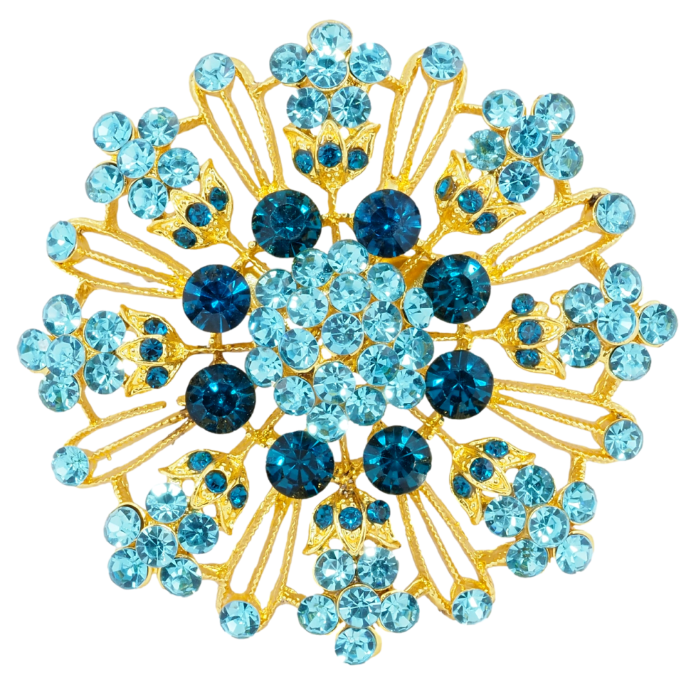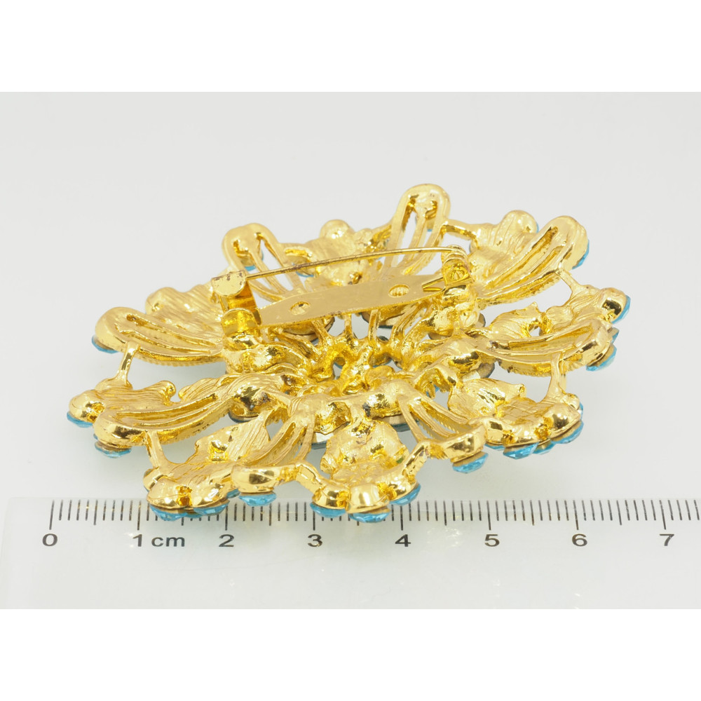 Брошка Квітка з бірюзовими стразами