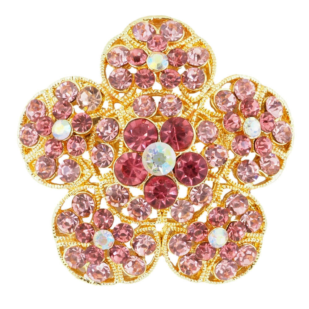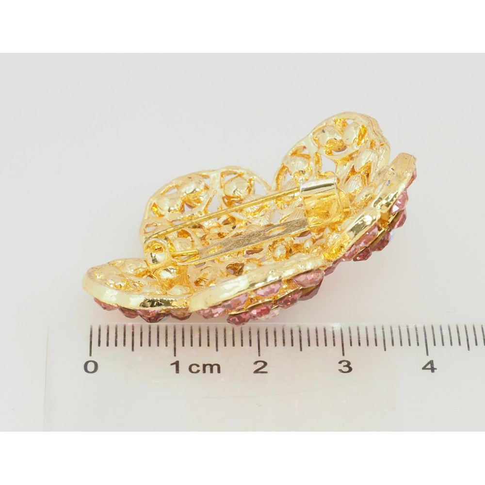 Брошка Квітка з рожевими стразами