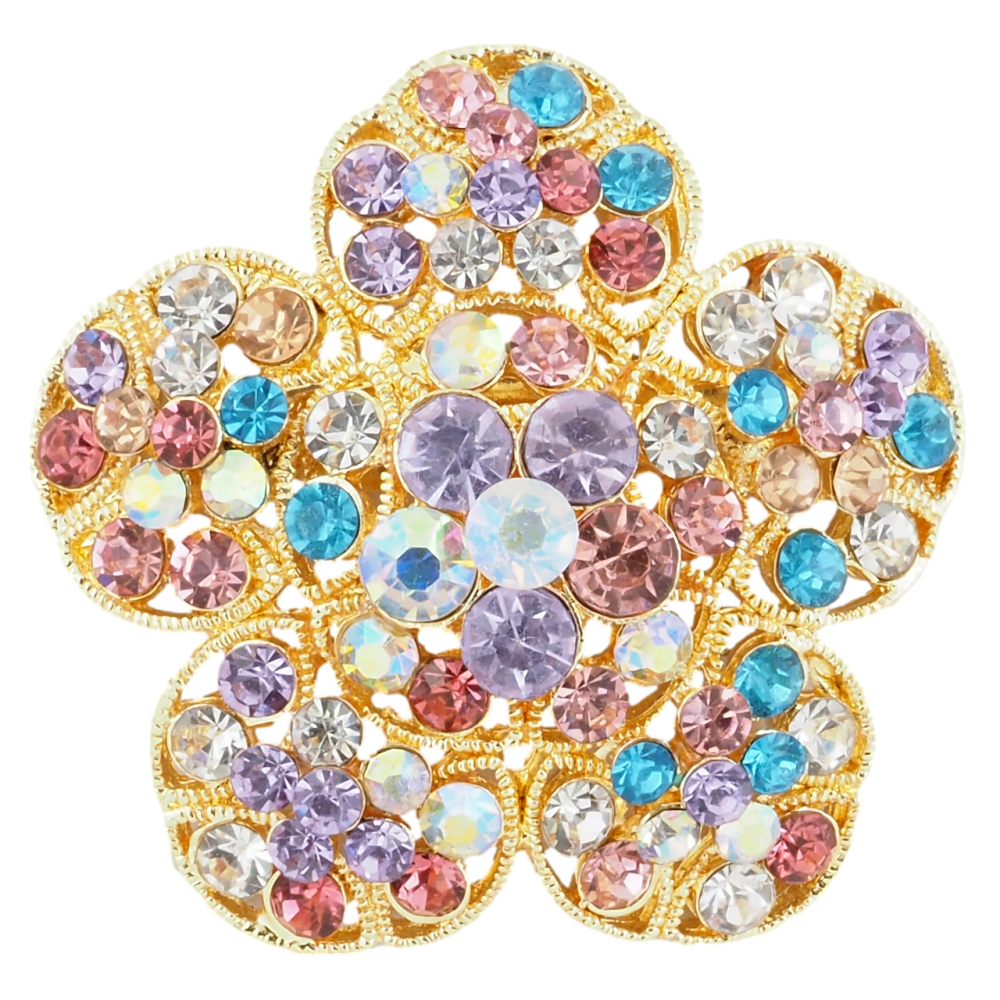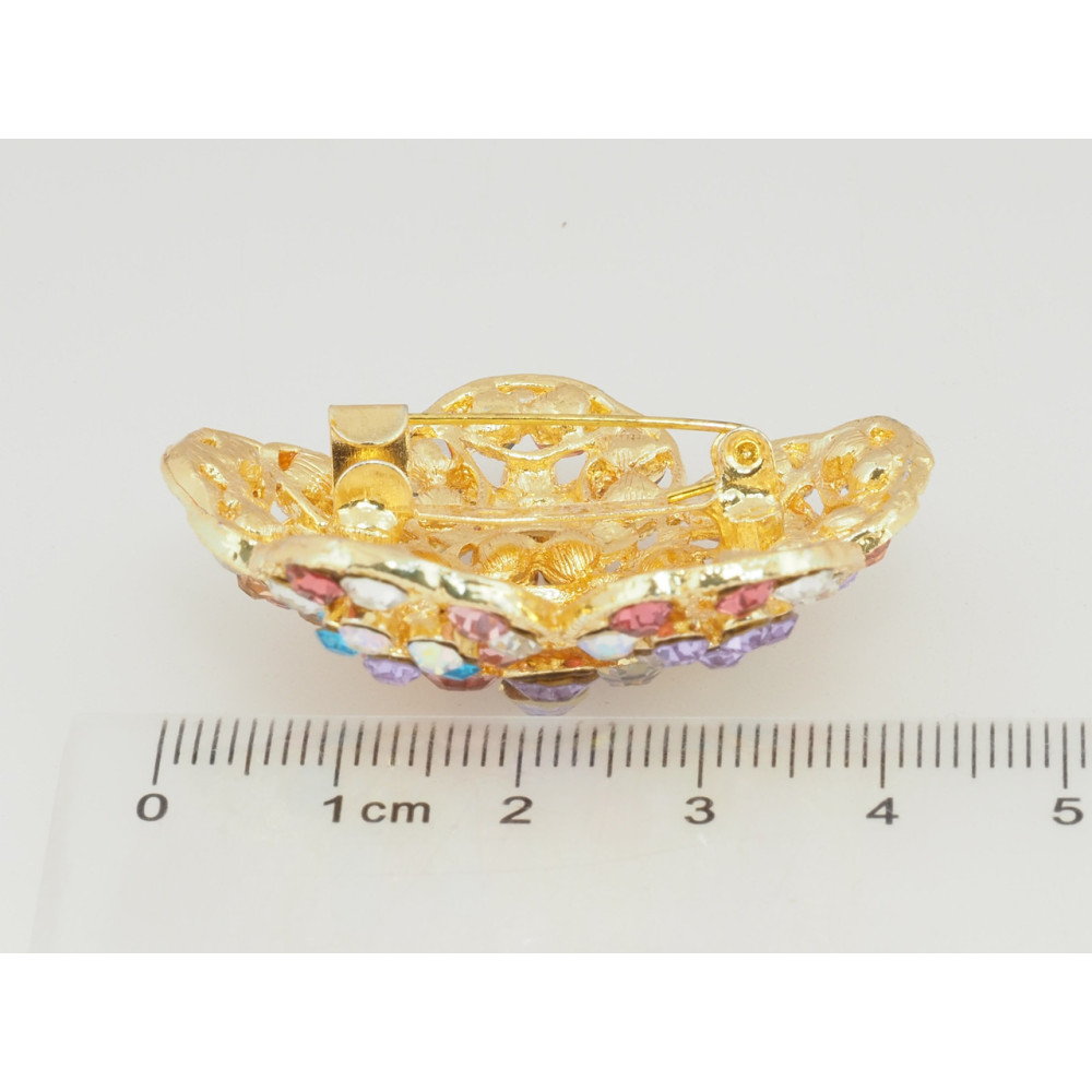Брошка Квітка з різнокольоровими стразами