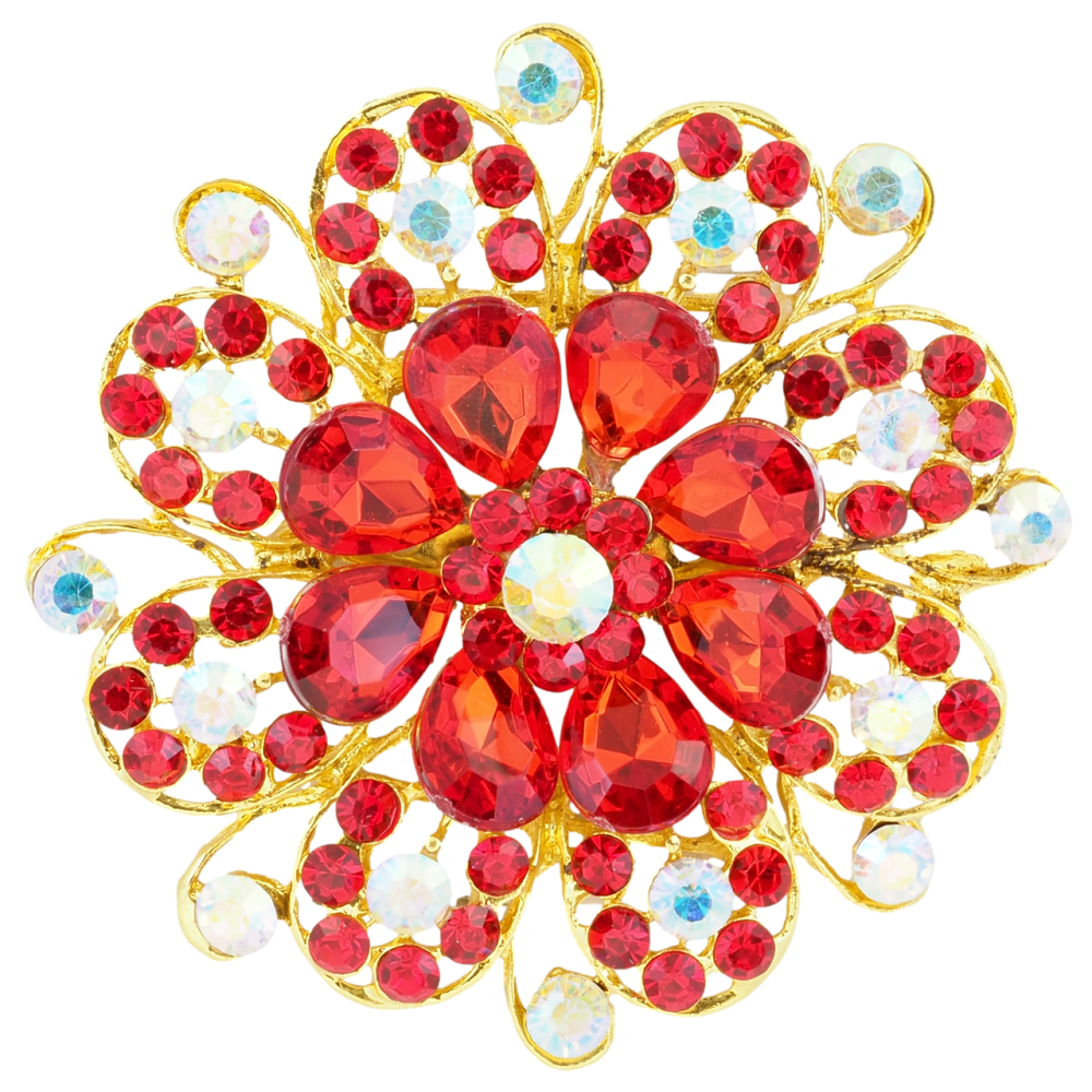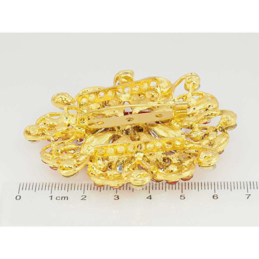 Брошка Квітка з червоними стразами