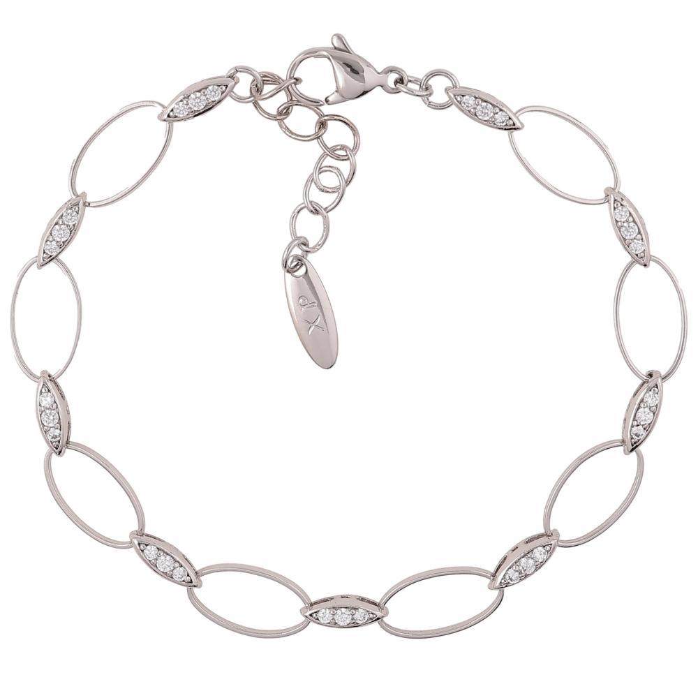 Браслет Xuping Родій «Овальні ланки з цирконієм» розмір з доп. ланцюжком 18-21см х 2-7мм