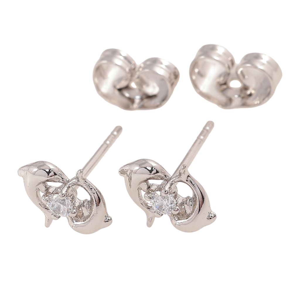 Сережки Xuping Родій пусети «Дельфіни з цирконієм»