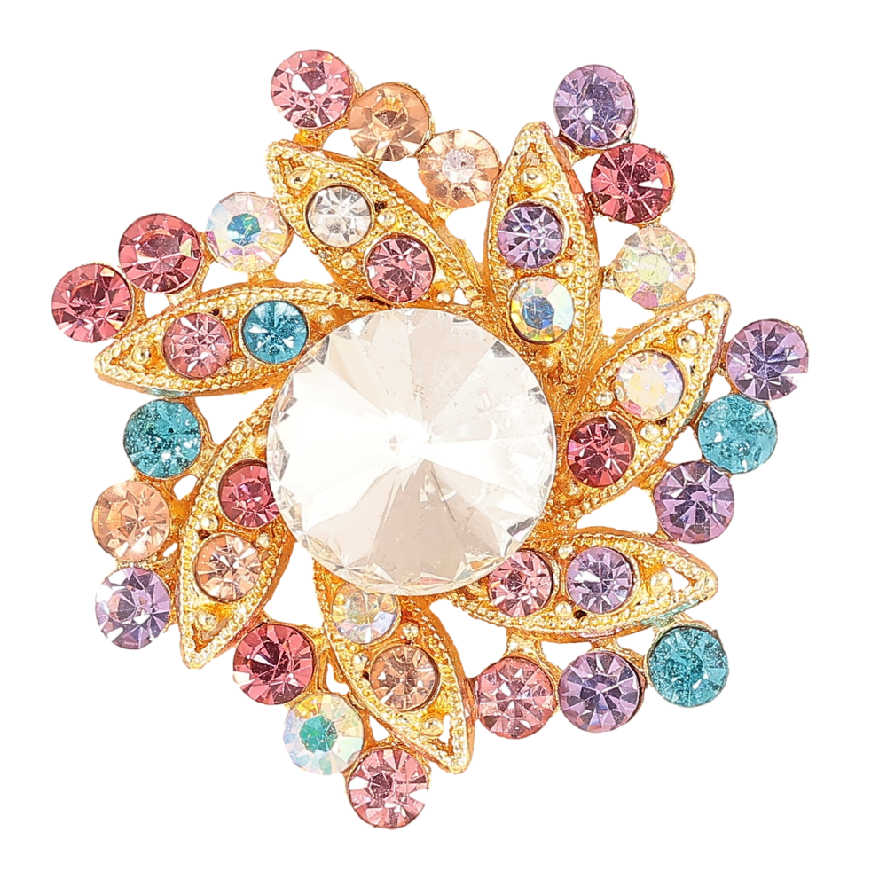 Брошка «Квітка з різнокольоровими стразами»