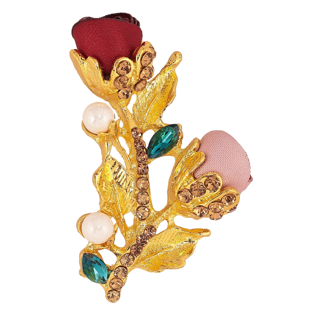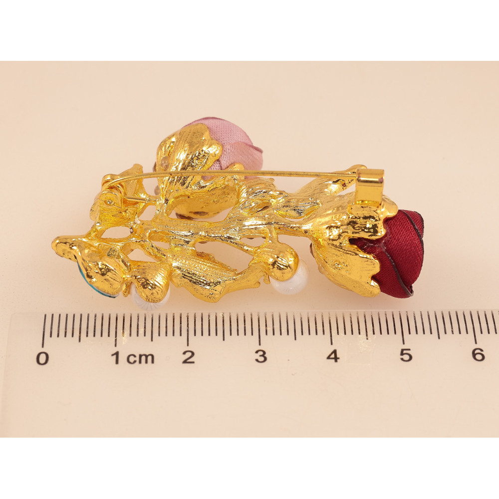 Брошка Рожево-червоні квіточки зі стразами фото №2