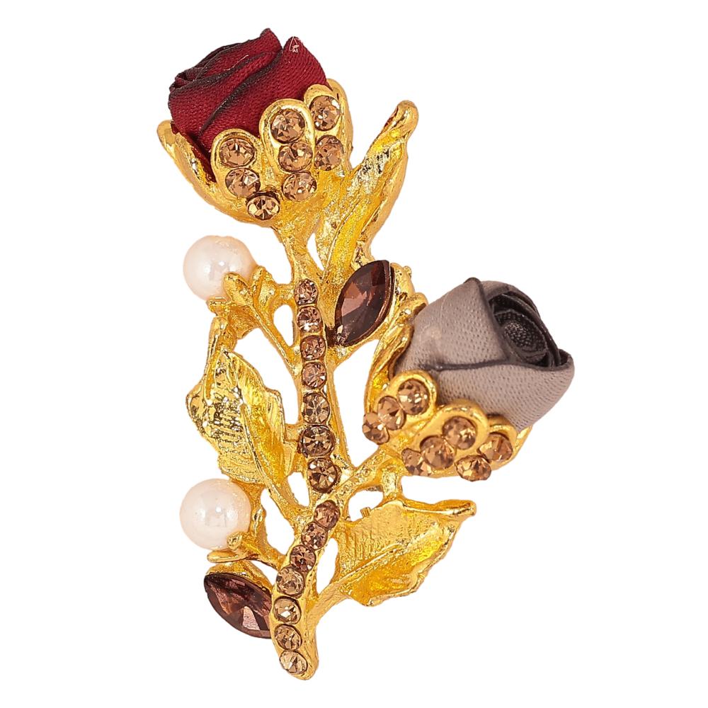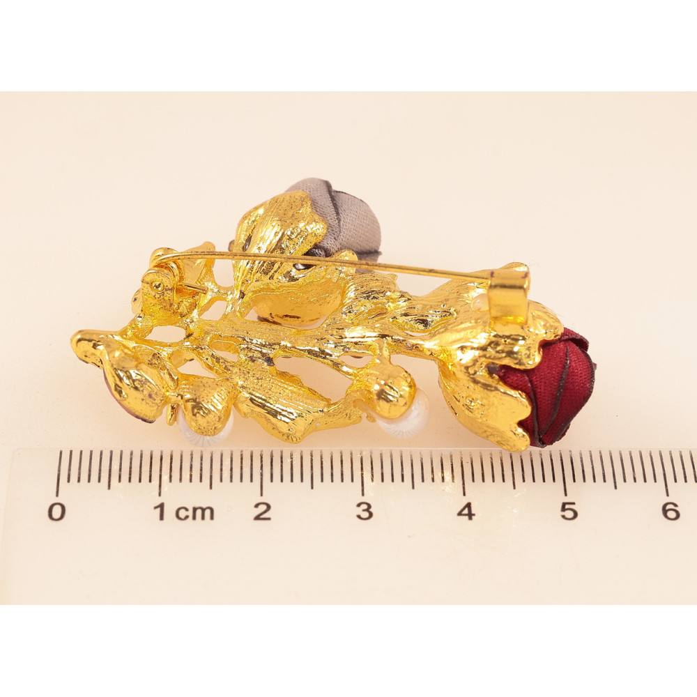 Брошка Червоно-бежеві квіточки зі стразами