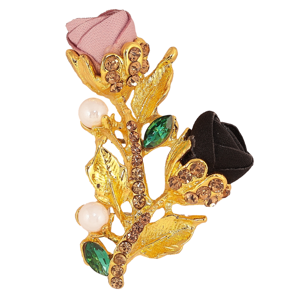 Брошка Рожево-чорні квіточки зі стразами