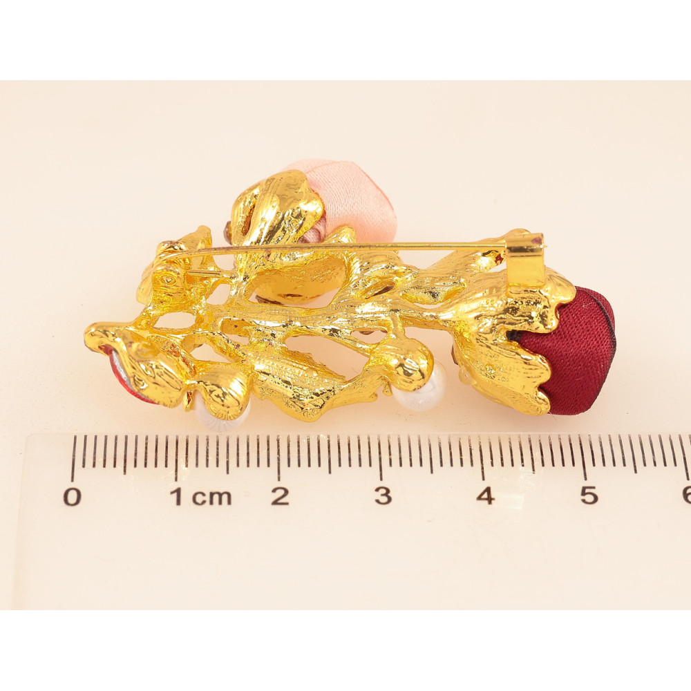 Брошка Червоно-рожеві квіточки зі стразами