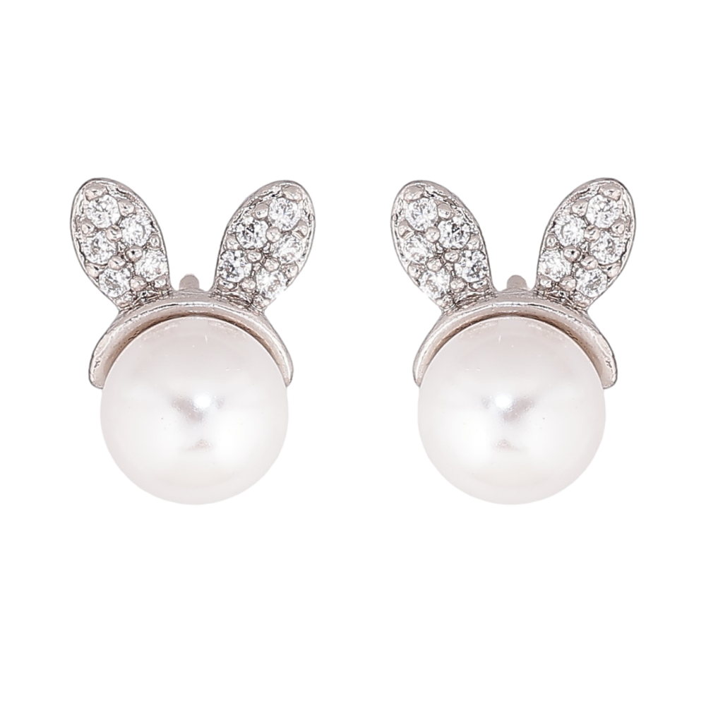 Сережки Xuping колір Родій пусети Перлинні зайчики