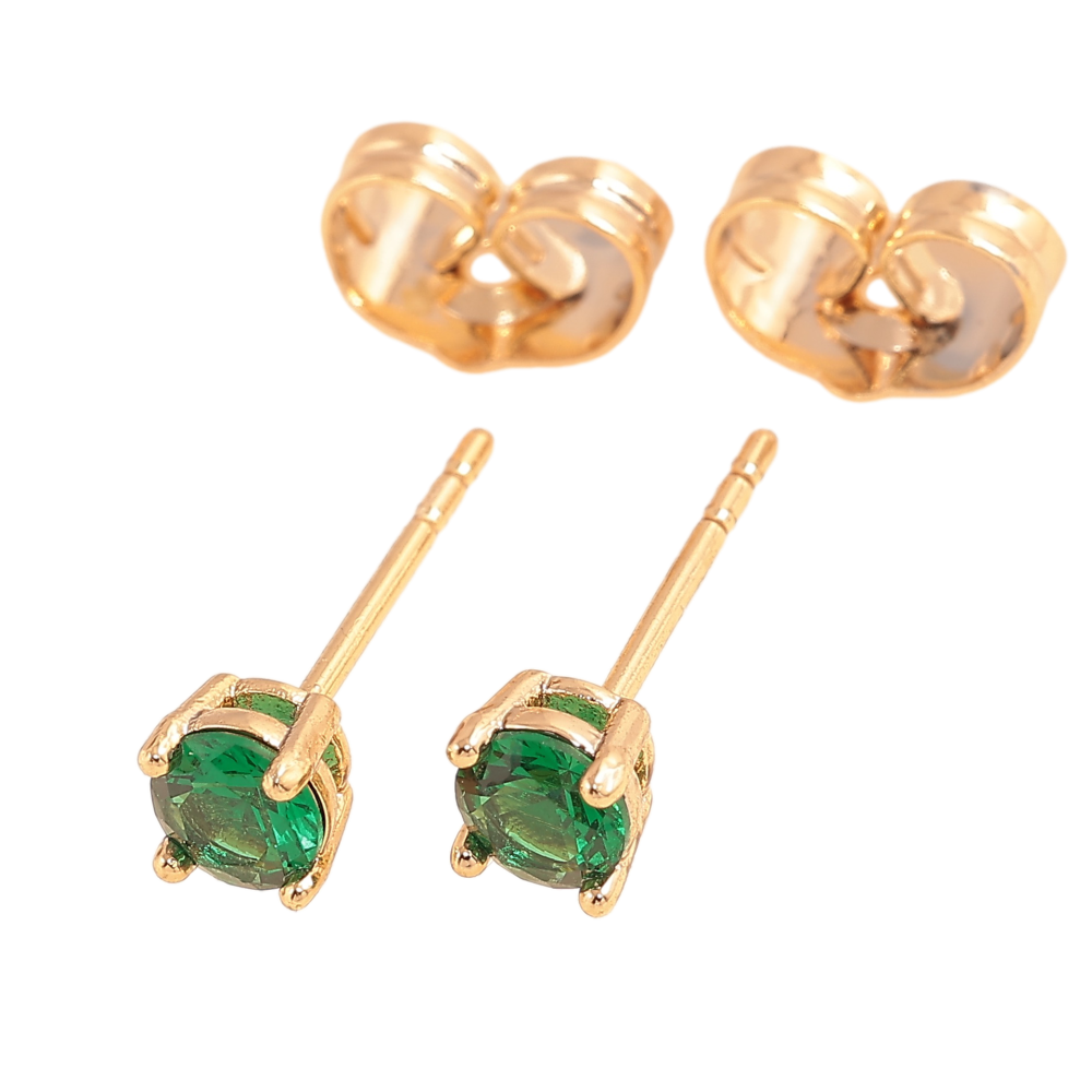 Сережки Xuping колір позолота 18К пусети зелені кристали в 4-х крапановій оправі ø 4мм