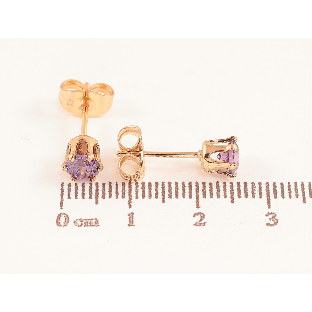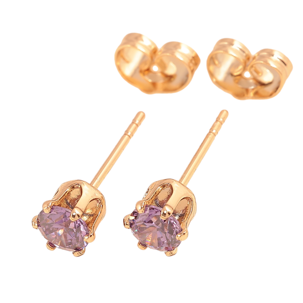 Сережки Xuping колір позолота 18К пусети бузкові кристали в 6-ти крапановій оправі ø 5мм
