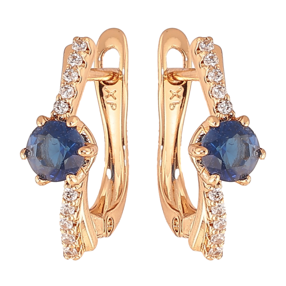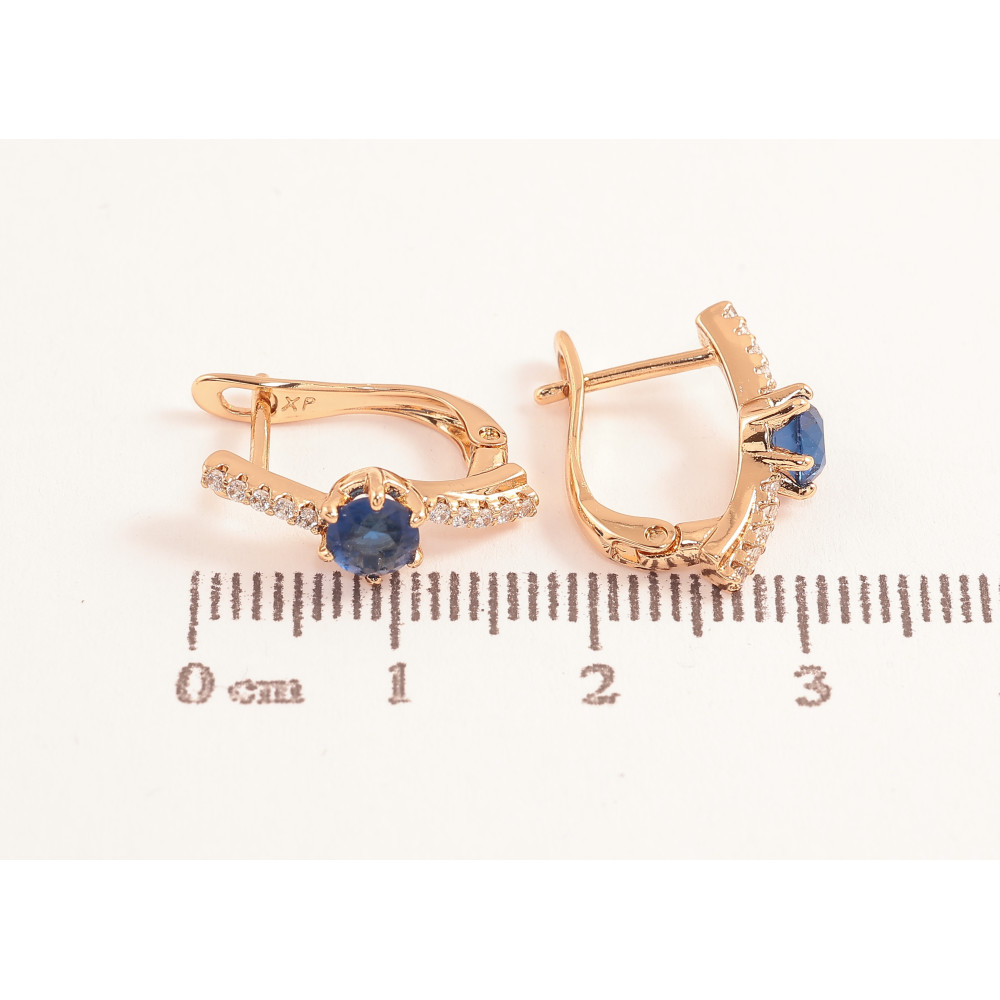 Сережки Xuping колір позолота 18K англійський замок візерунок з синіми кристалами