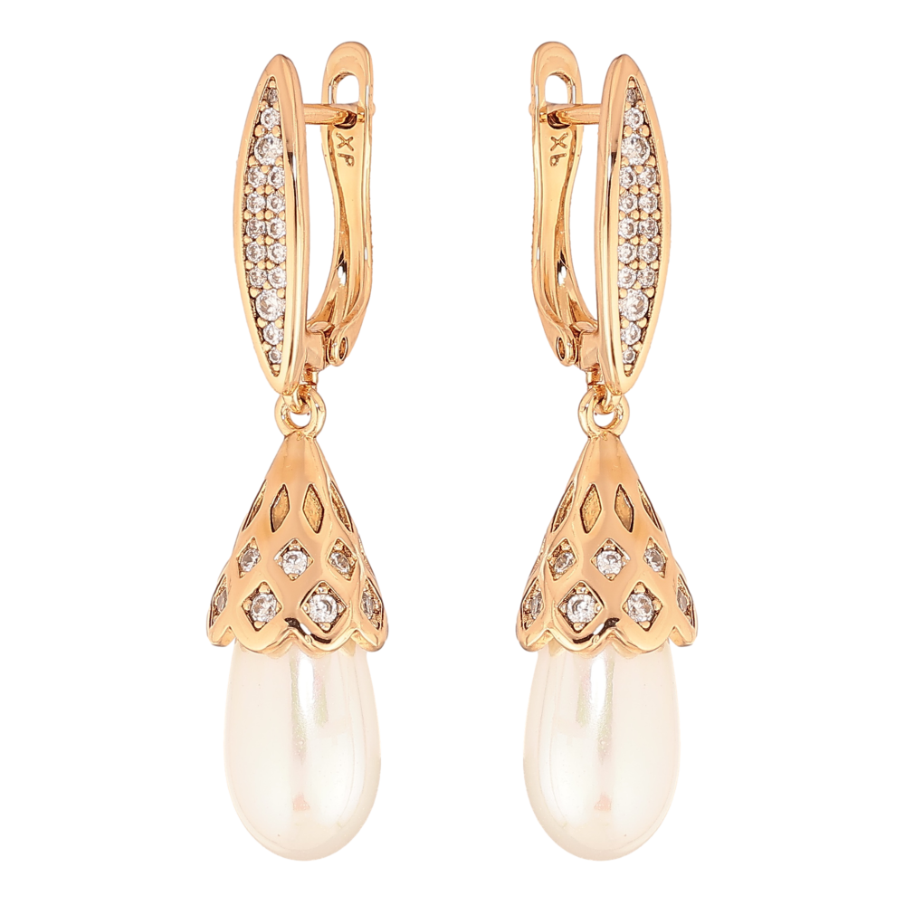 Сережки Xuping колір позолота 18K англійський замок перлинні підвіски