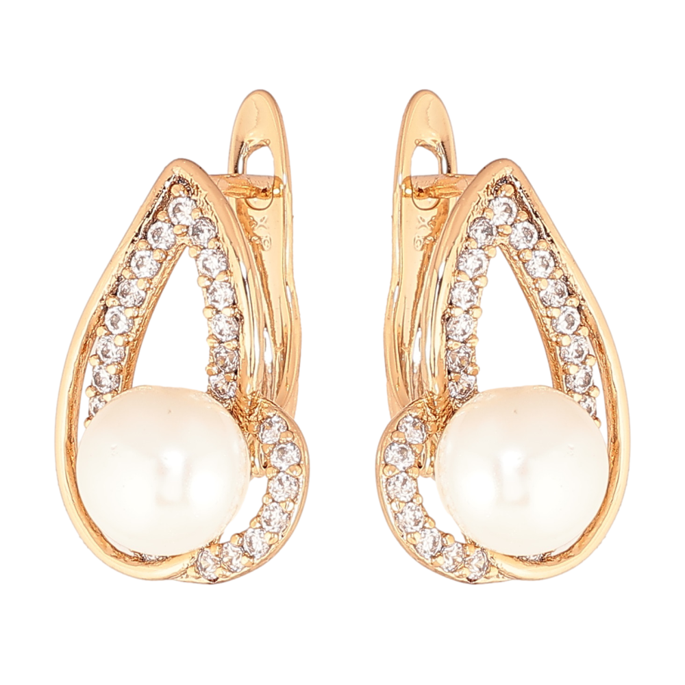 Сережки Xuping колір позолота 18K англійський замок візерунок з кристалами та перлинами