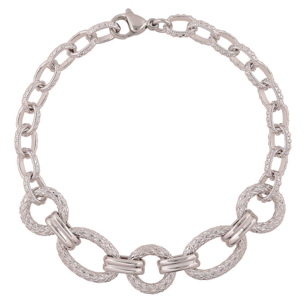 Браслет Xuping колір Родій "Ланцюжок комбінований" довжина 19.5см х 3-11мм