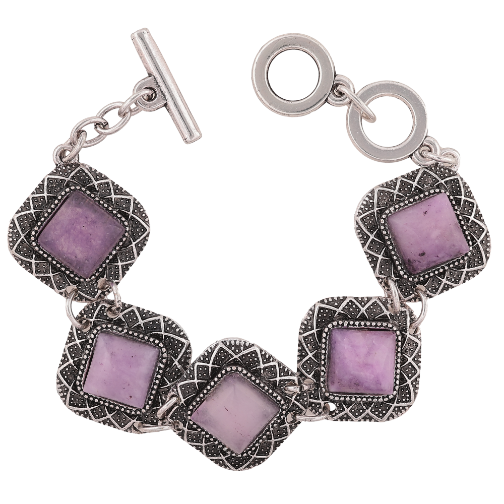 Браслет "Імітація чорненого срібла з бузковими кристалами" розмір 18см х 26мм