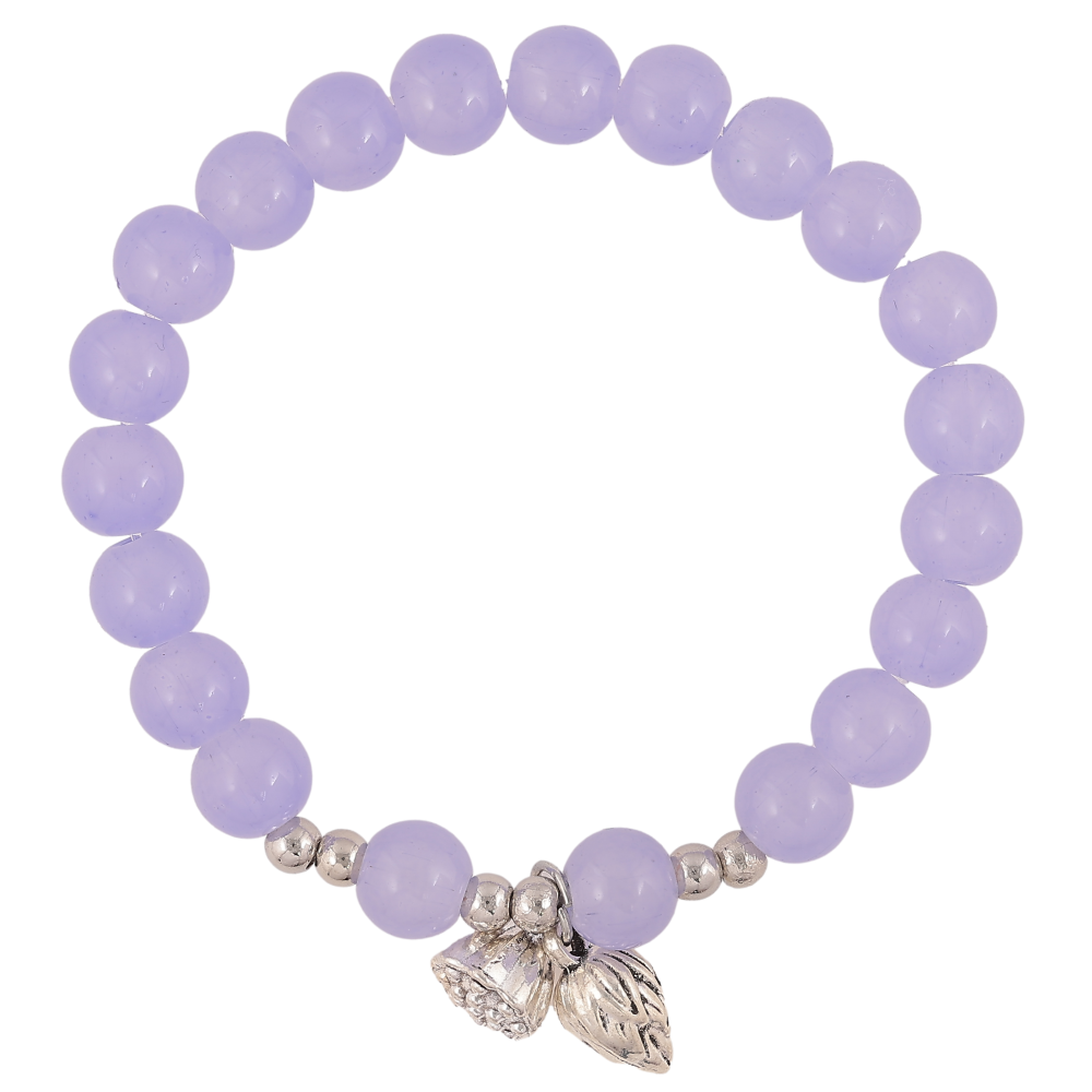 Браслет на резинці скло "Бузкові намистини з підвісками, ø 8мм" вільний розмір