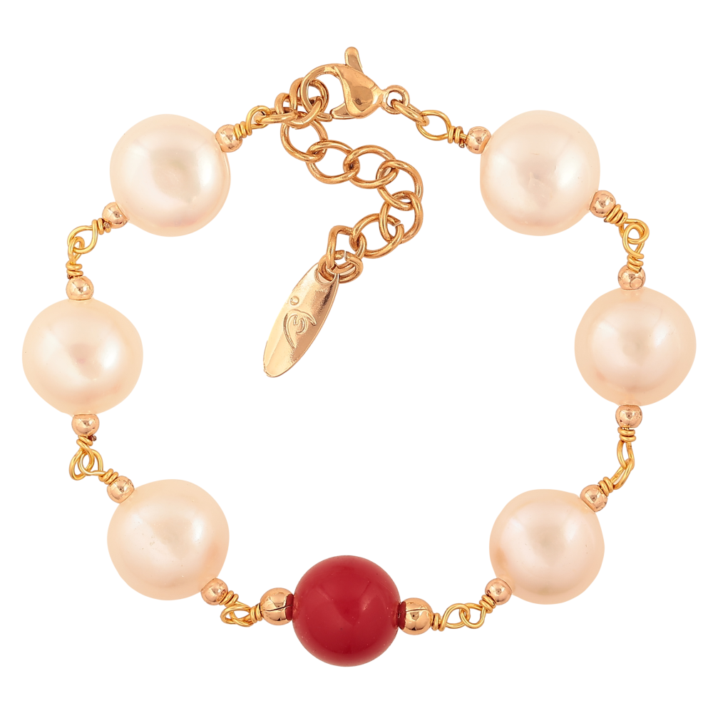 Браслет Xuping JEAN GOUJON колір Позолота 18K "Перлини з червоною намистиною" довжина з доп.ланцюжком 16-19.5см х 2-11мм