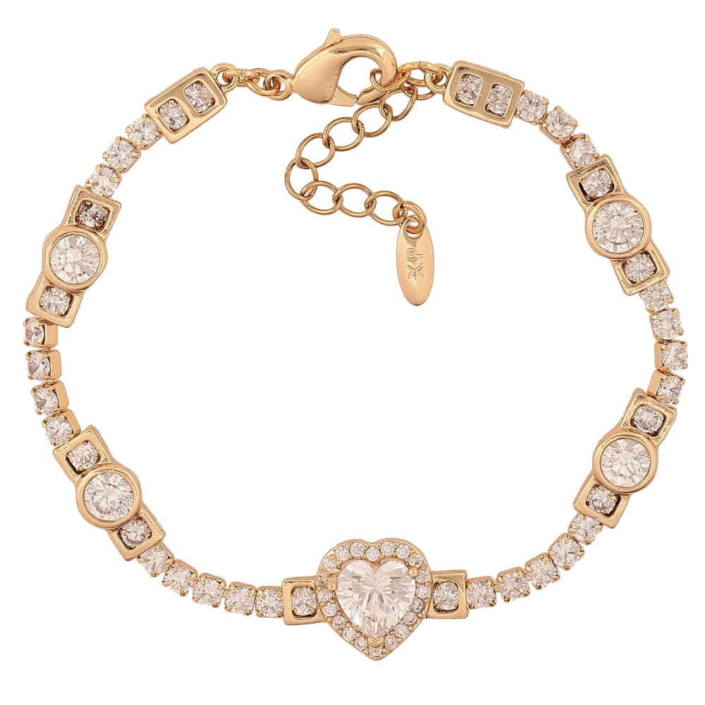 Браслет Xuping колір Позолота 14K "Доріжка кристалів із серцем" розмір з доп. ланцюжком 16.5-19.5см х 3-11мм